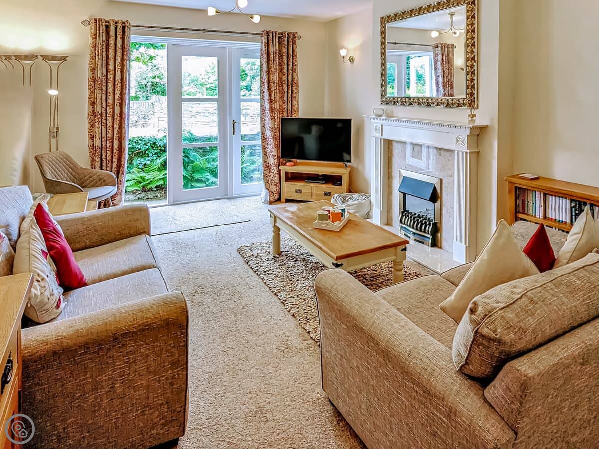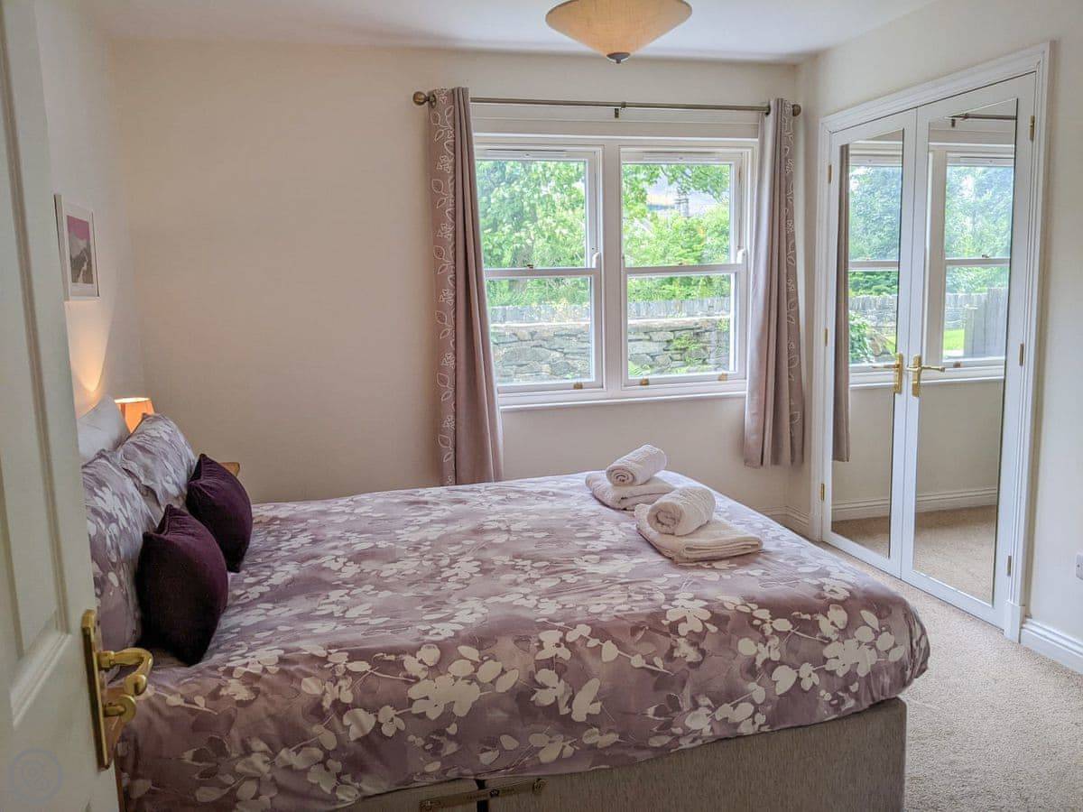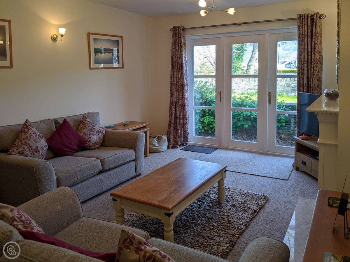 This is the apartment at 2 Greta Grove House. It's on a small development on the edge of Keswick. You're a five minute walk from the main shops but it feels quiet, because you're right by the River Greta. You can see Skiddaw from the patio.