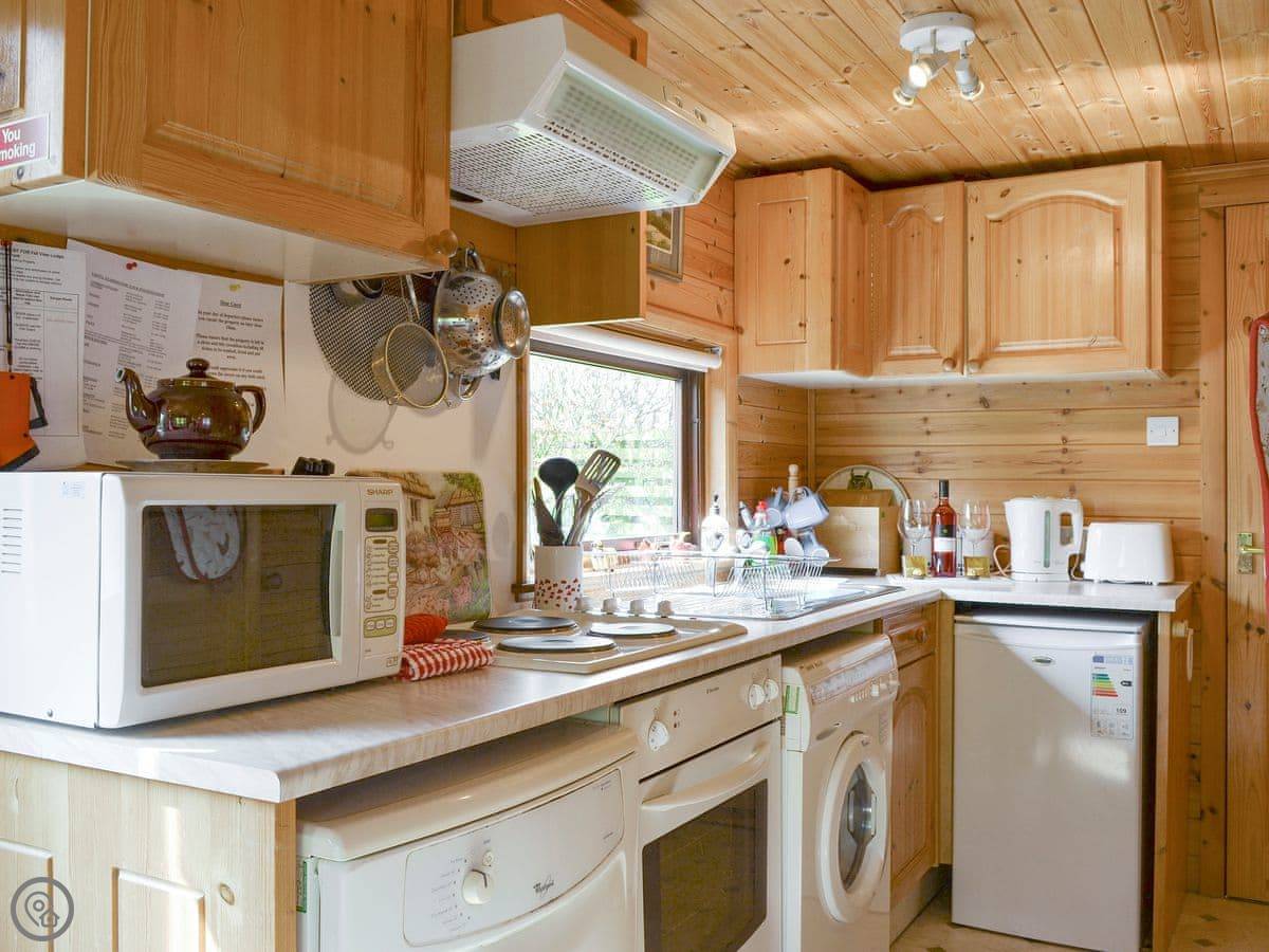 Fell View Lodge is one of the cabins at Burnside Park, just outside Keswick. It's a pine lodge, so it's like a little wooden cabin. It sleeps two, one bedroom with an ensuite bathroom. It's got a 3 Star rating, which is about right. It's comfortable and clean, not luxury.