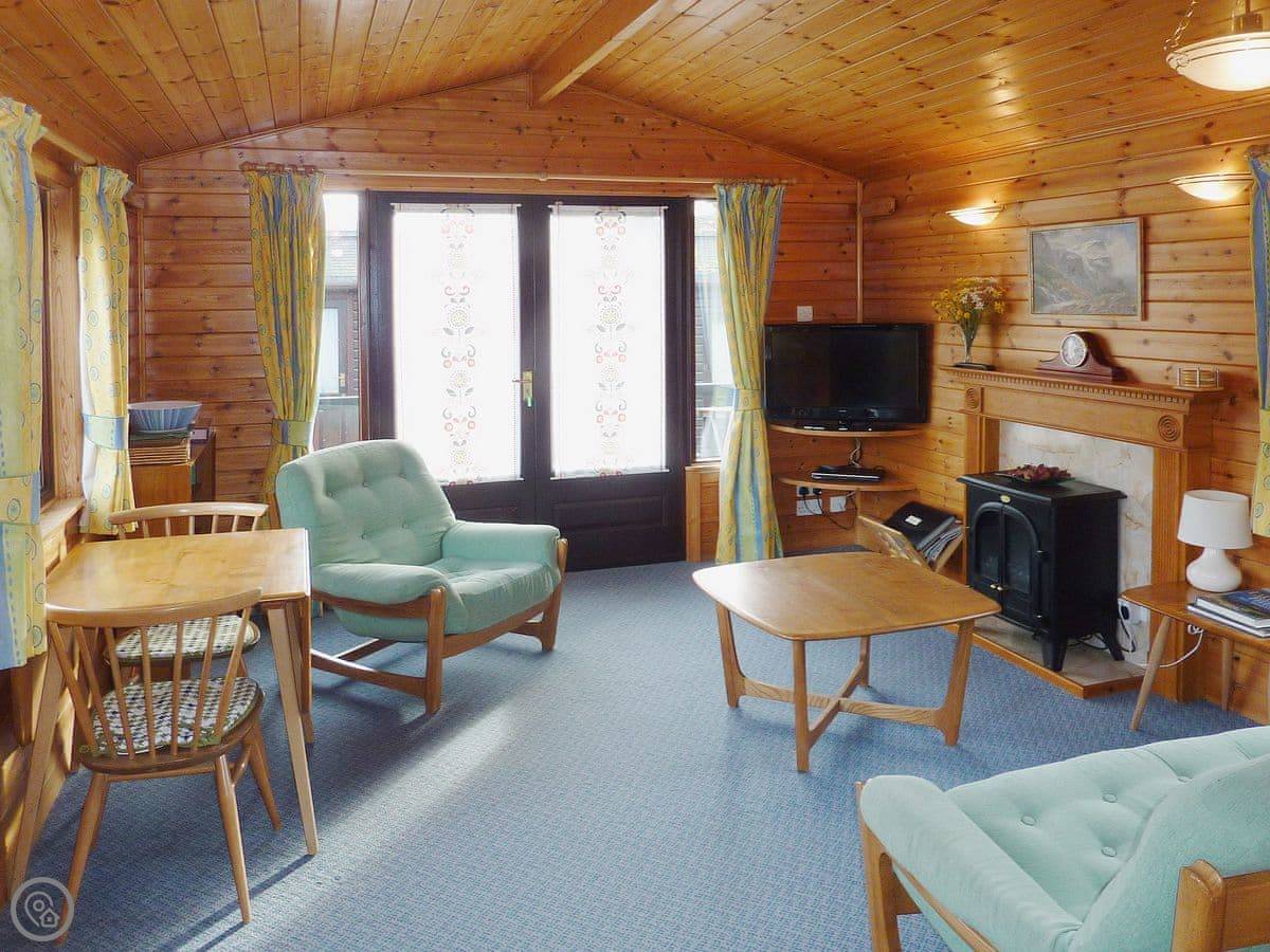 Those who are in love with the ’great outdoors’ will find the location of Burnside Park the perfect place to stay. This comfortable pine log cabin is well equipped for every modern day convenience including private parking for one car immediately in front of the lodge. In the open plan living space there are patio doors providing access straight on to the raised L-shaped wooden terrace which provides views of Skiddaw, Latrigg and as far as the Helvellyn range. Swallows occasionally nest above the terrace and the swallows feed at the small brook just 3 metres away and over the adjacent open fields. The furniture is fashionable, comfortable and high quality from the famous retro style brand, Ercol and there is convenient enclosed hanging space for outdoor clothing and boots. Enjoy a restful night’s sleep in the double bed with luxury pocket-sprung mattress, there is also ample wardrobe and storage space in here. The bathroom has a full-size bath with shower over, heated towel rail, over sink light, shaver and toothbrush sockets.