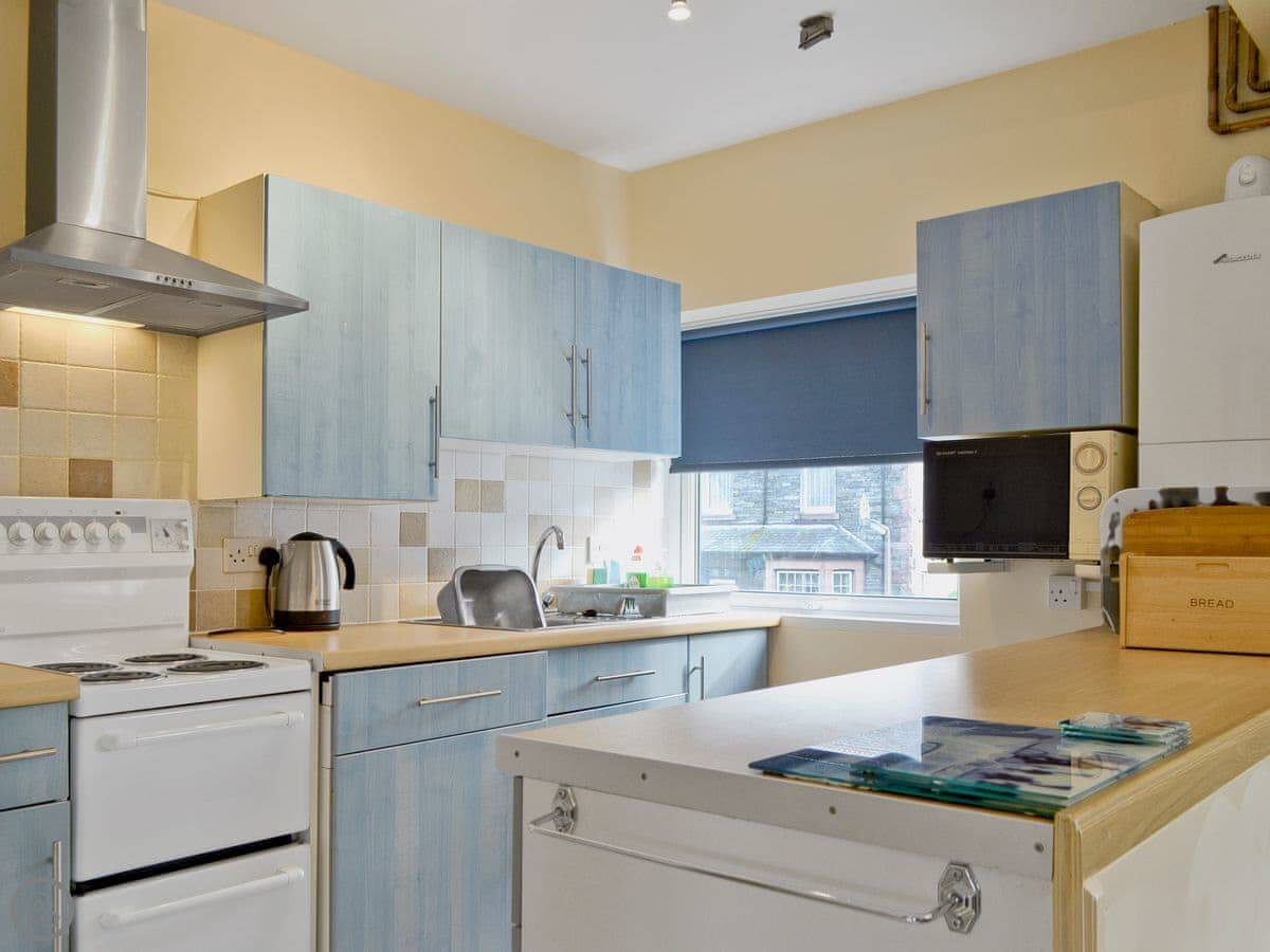 This place is a two bedroom flat on the first floor. It's in a quiet bit of Keswick, about a five minute walk from the shops and pubs. It's called Serendipity.