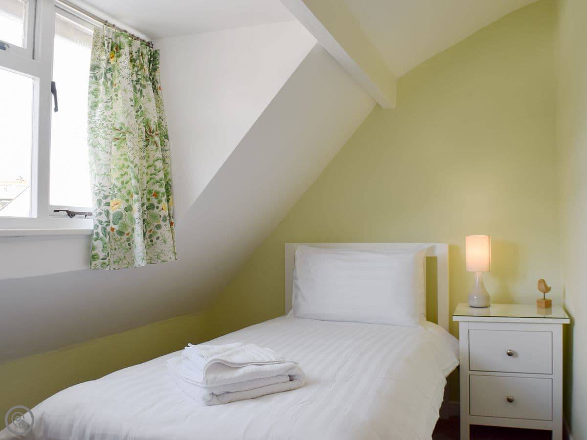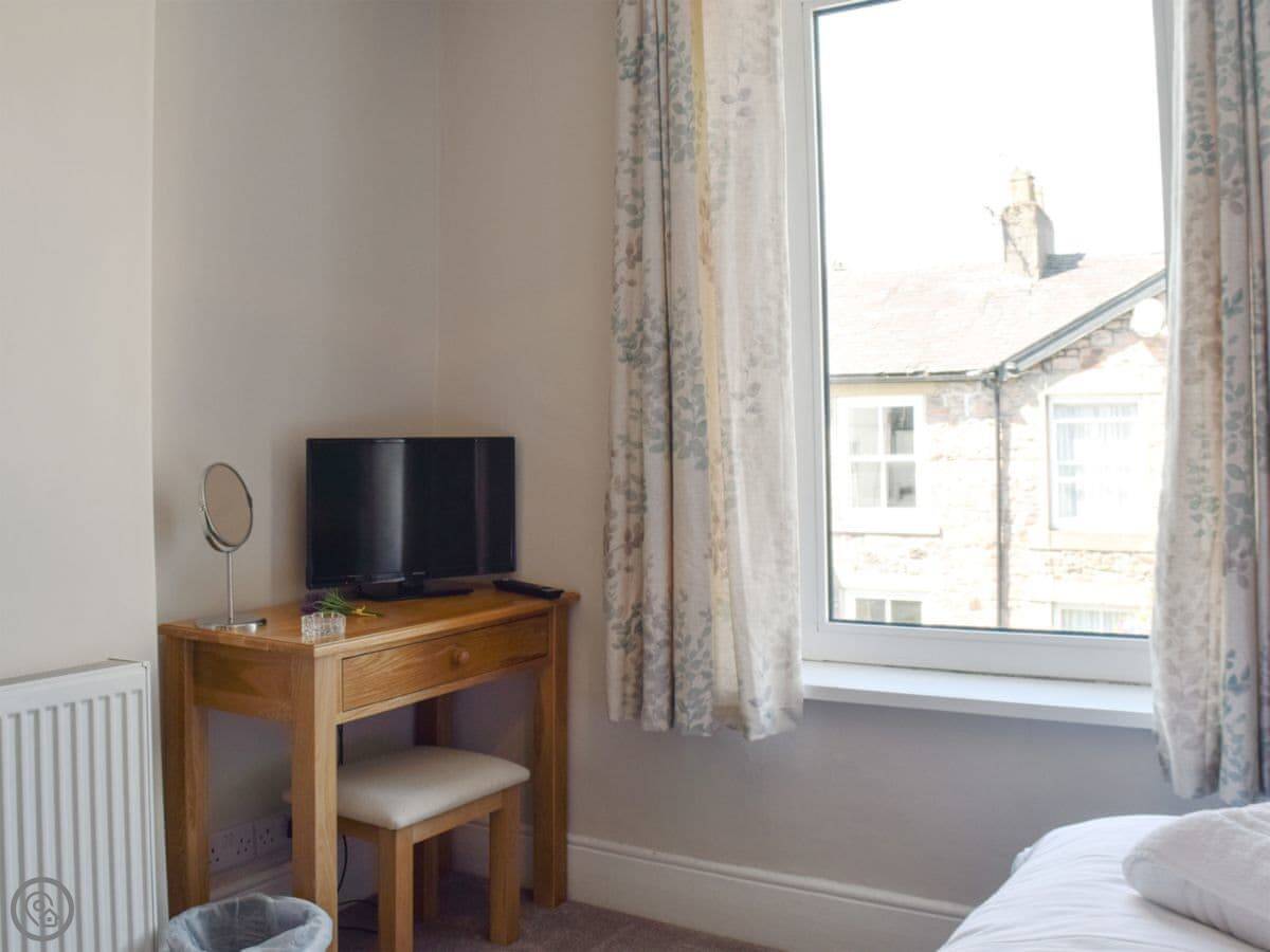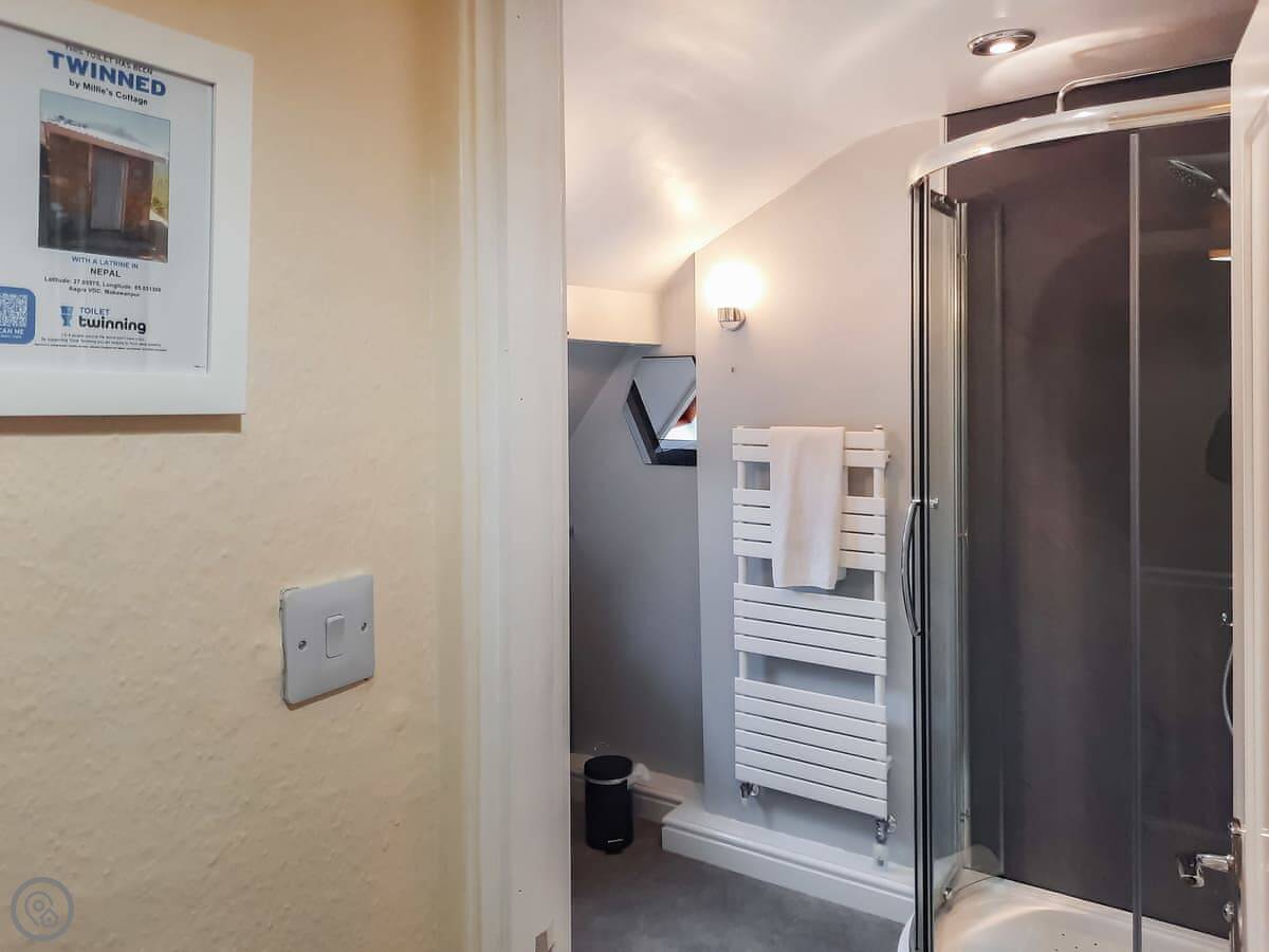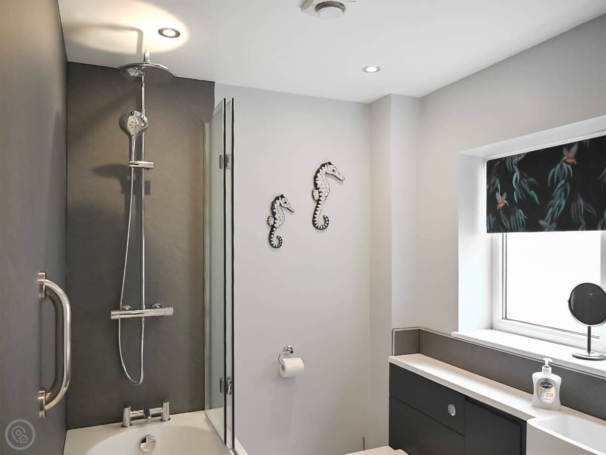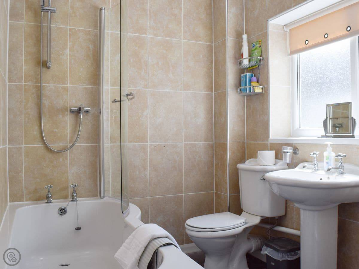 It sleeps four. There are three bedrooms and two bathrooms. One bathroom has a bath, the other is just a shower room. It's a 4 Star place, so it's comfortable and has everything you need. They've recently done the family bathroom.