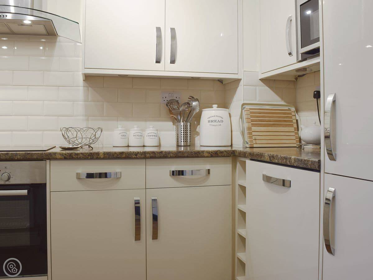 It’s got Wi-Fi, a TV, washer, and includes bedding and towels. There’s a cot and a highchair if you need them. No pets, I’m afraid.