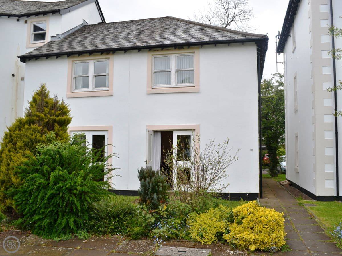 This is 18 Elm Court in Keswick. It's in a quiet bit of town, sort of a little cul-de-sac of cottages. It’s a level five minute walk to the main street, so you don’t need the car for shops or a pub.