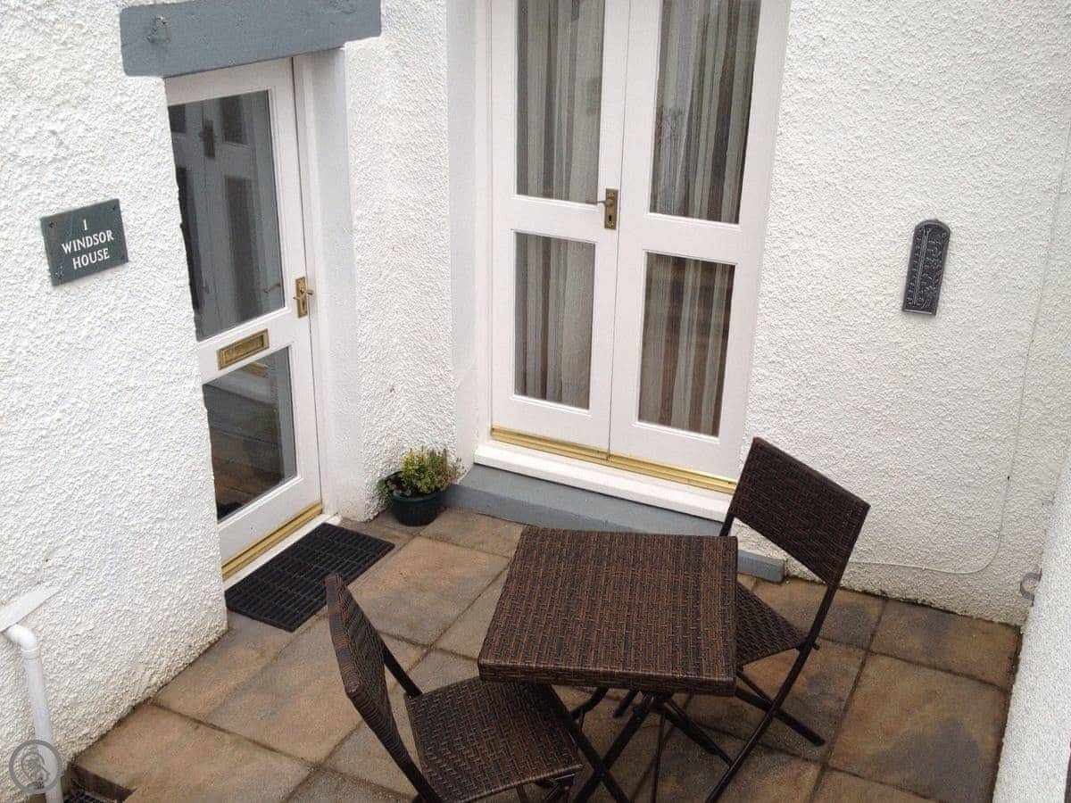There's a private parking space right outside the door. That's quite rare for the centre of Keswick. There's also a small, enclosed patio area with a table and chairs.