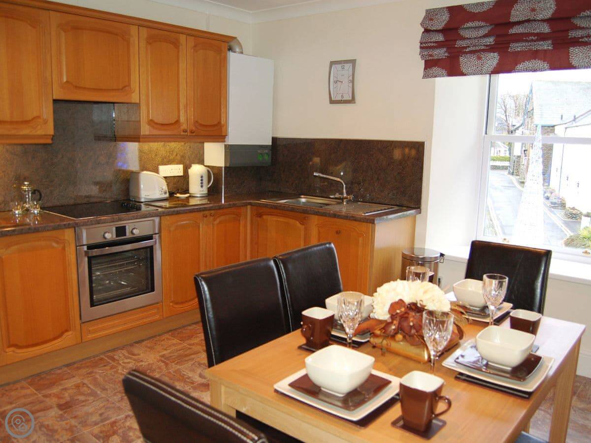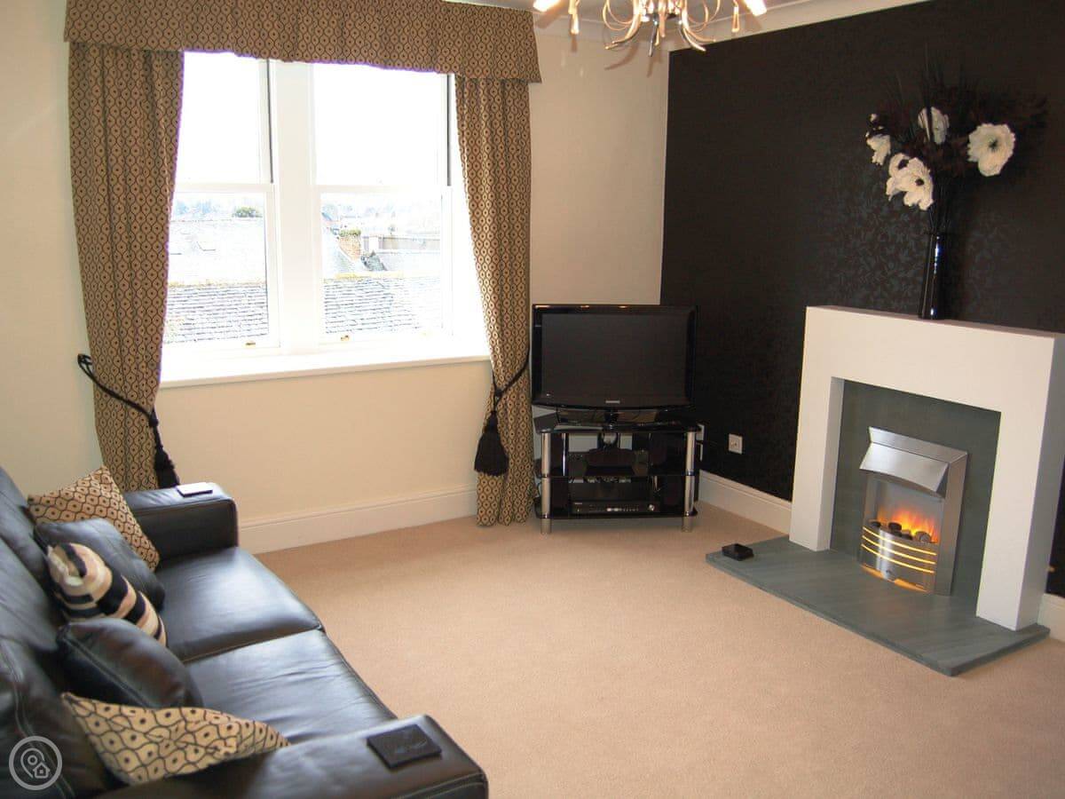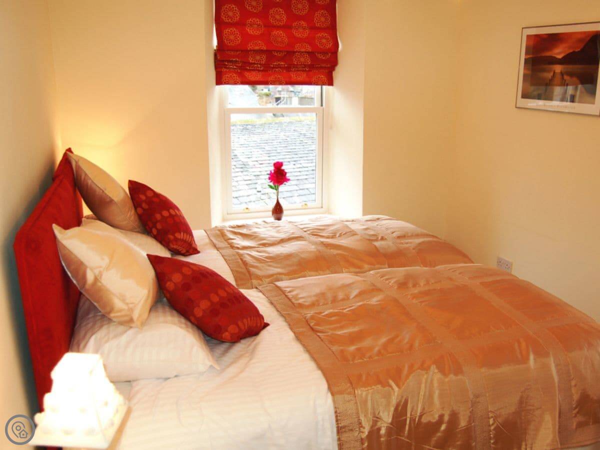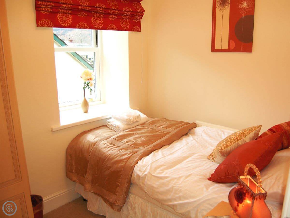 It sleeps four. Two bedrooms and one bathroom. It's got a 4 Star rating, so it's well-kept and comfortable. The main thing is the view. You can see the fells from most of the rooms, especially the living room. It's in a really quiet bit but you're only a minute's walk from the shops and pubs.