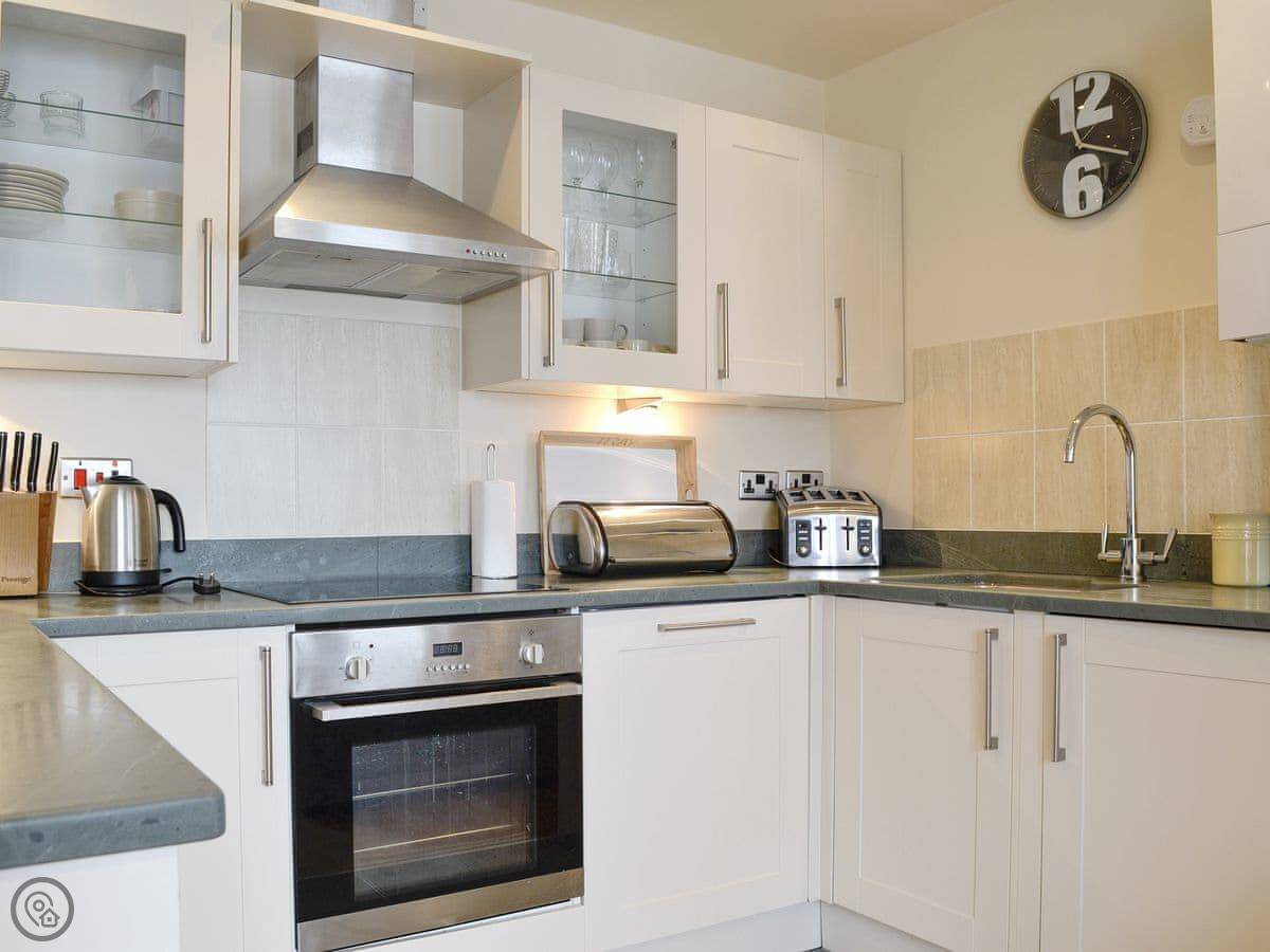 Inside, you can use the stairs or there's a lift if you've got bags or a pushchair. The kitchen has a dishwasher and a washing machine. Bedding and towels are included.