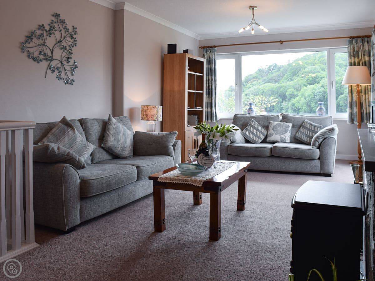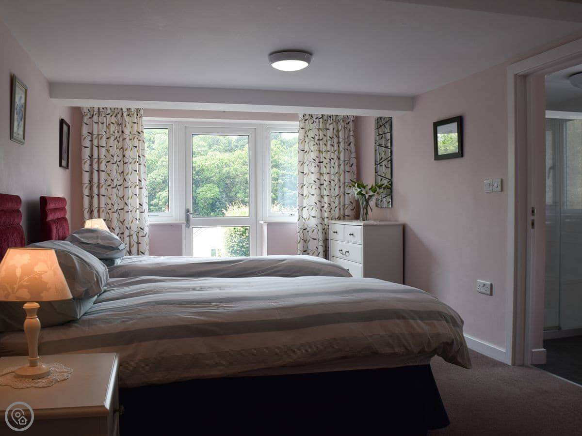 It sleeps six in three bedrooms. There are two bathrooms. It's a 4 Star place, so it's comfortable and has everything you'd need. Most of it is on one level, but there's a twin bedroom downstairs. You get to it by some steps from the living room.