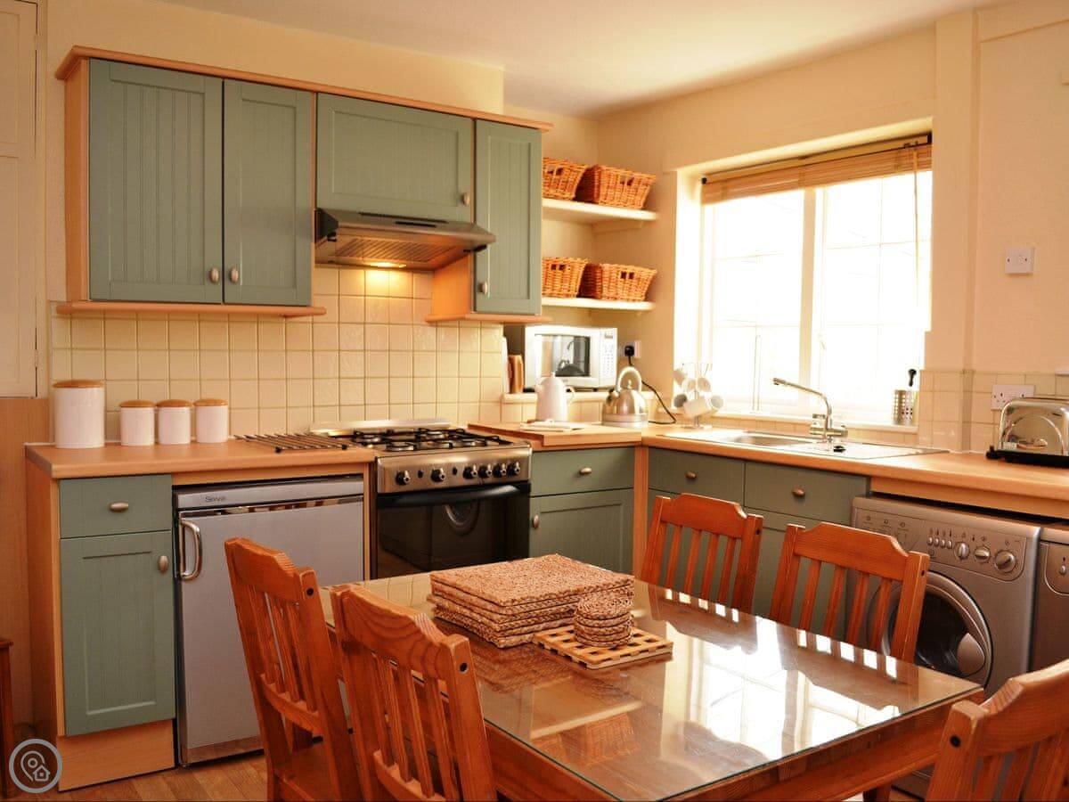 Inside, there's a washing machine, a dishwasher, and WiFi. Bedding and towels are included. There's a cot if you need it. You can store bikes.