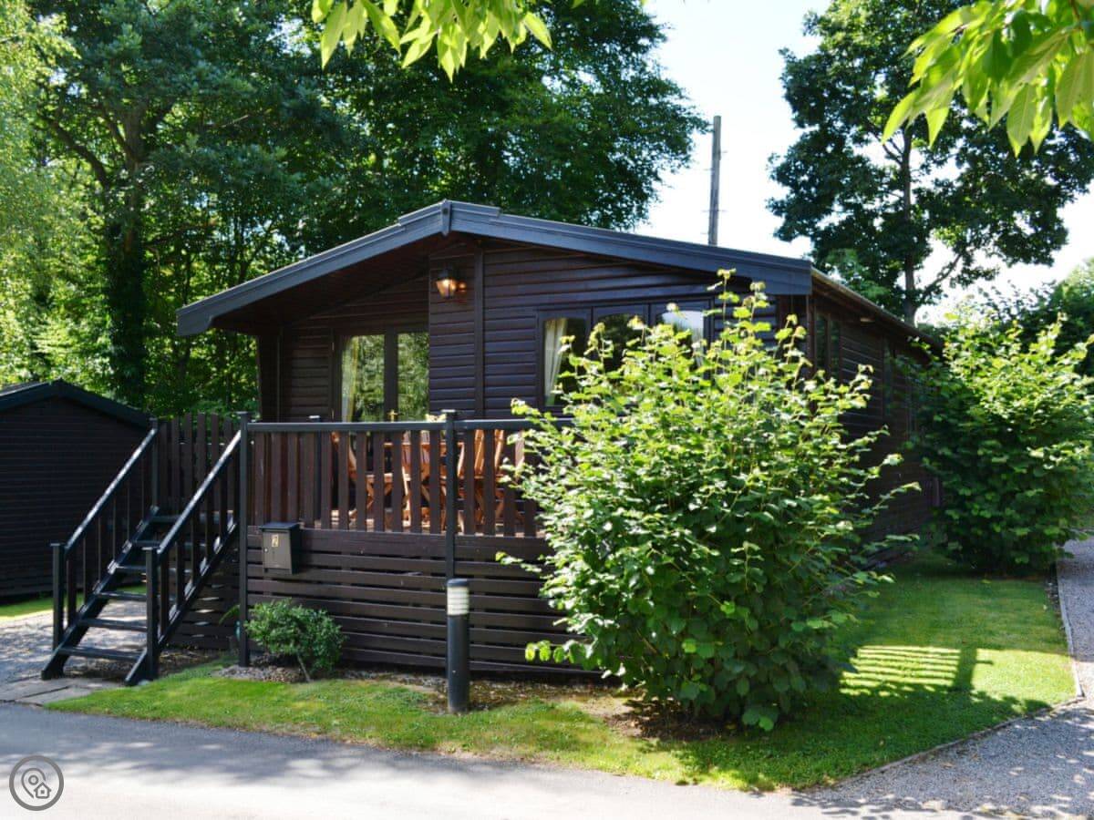Fern Lodge is on the Burnside Park site, just outside Keswick. It's a pine log cabin, one of a few up there. The park sits right at the foot of Latrigg, so the views across the fells are good.