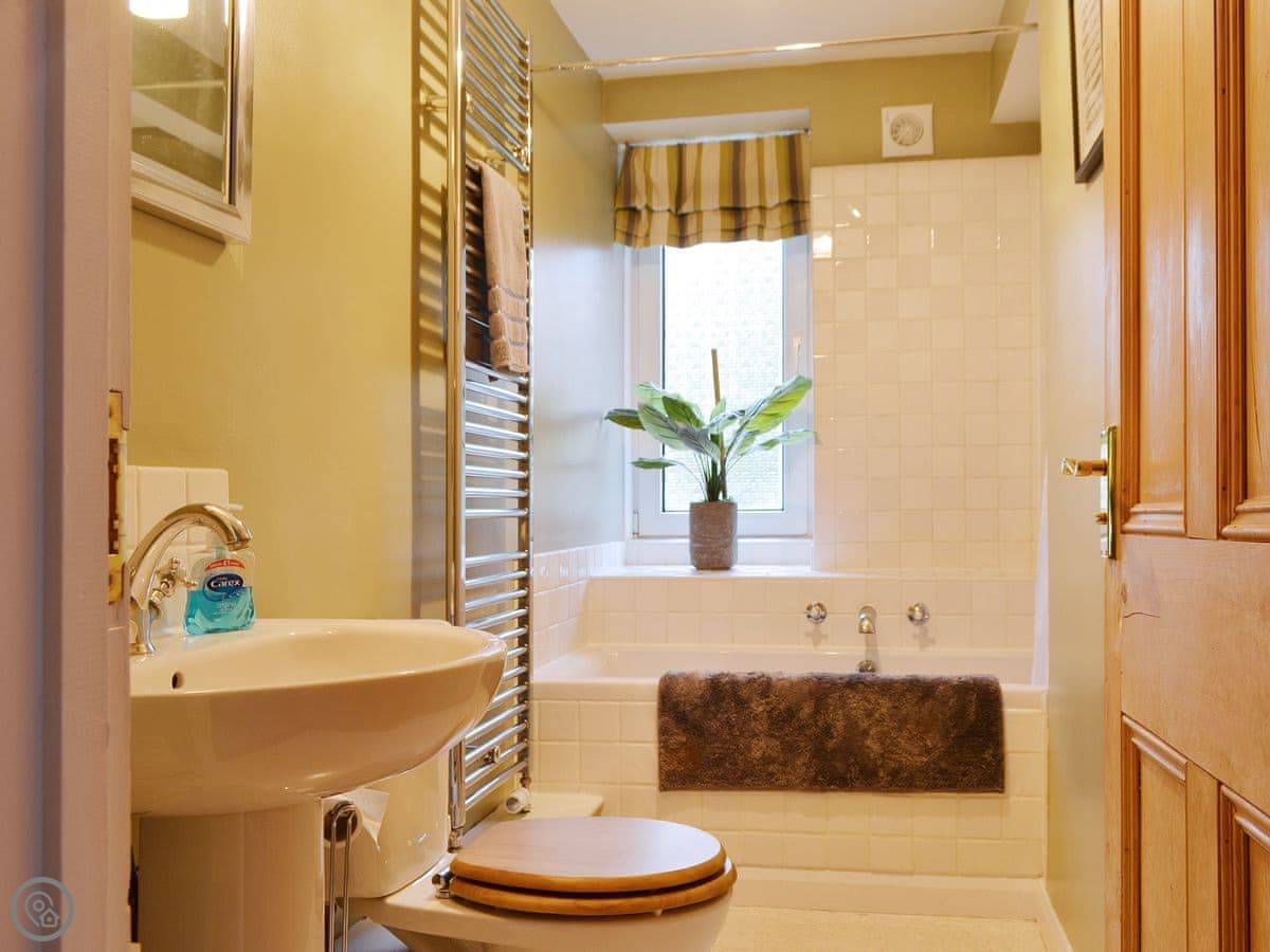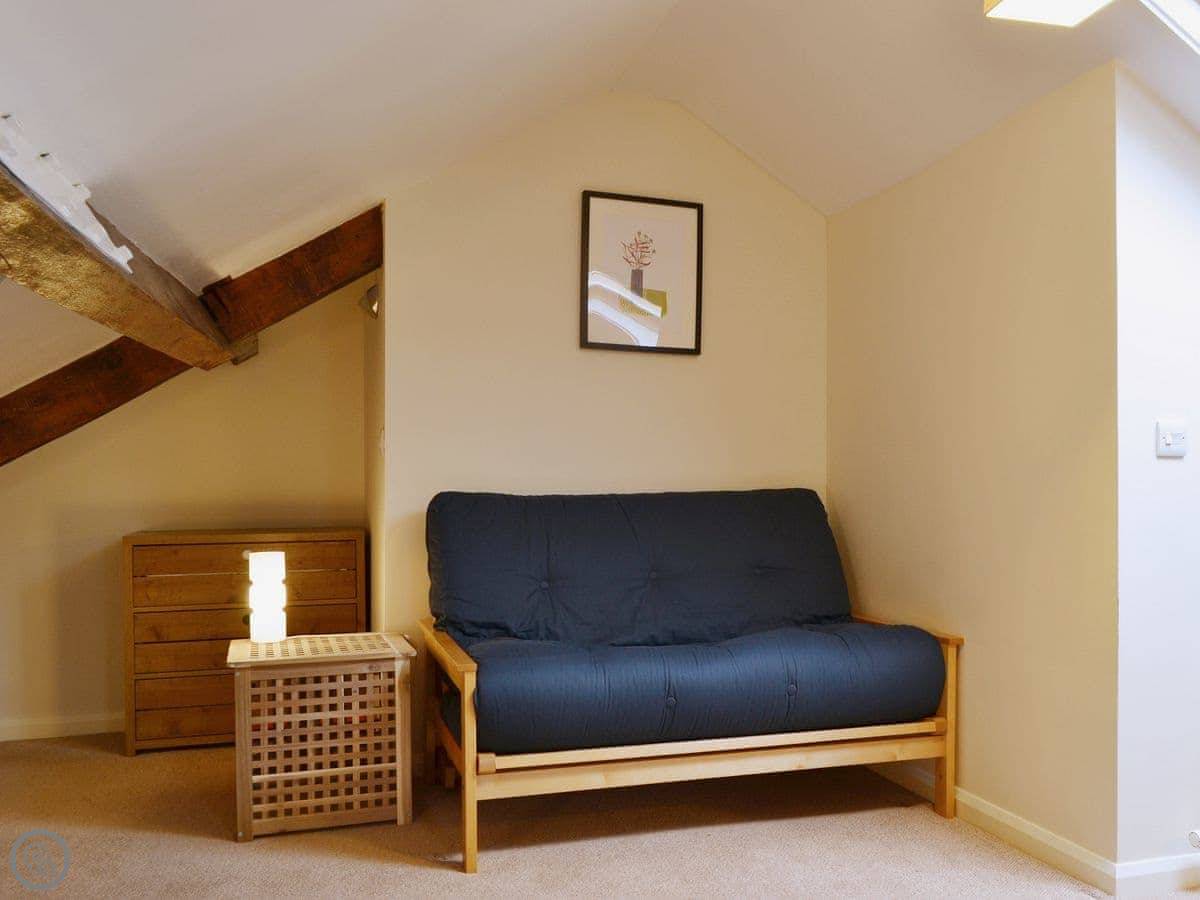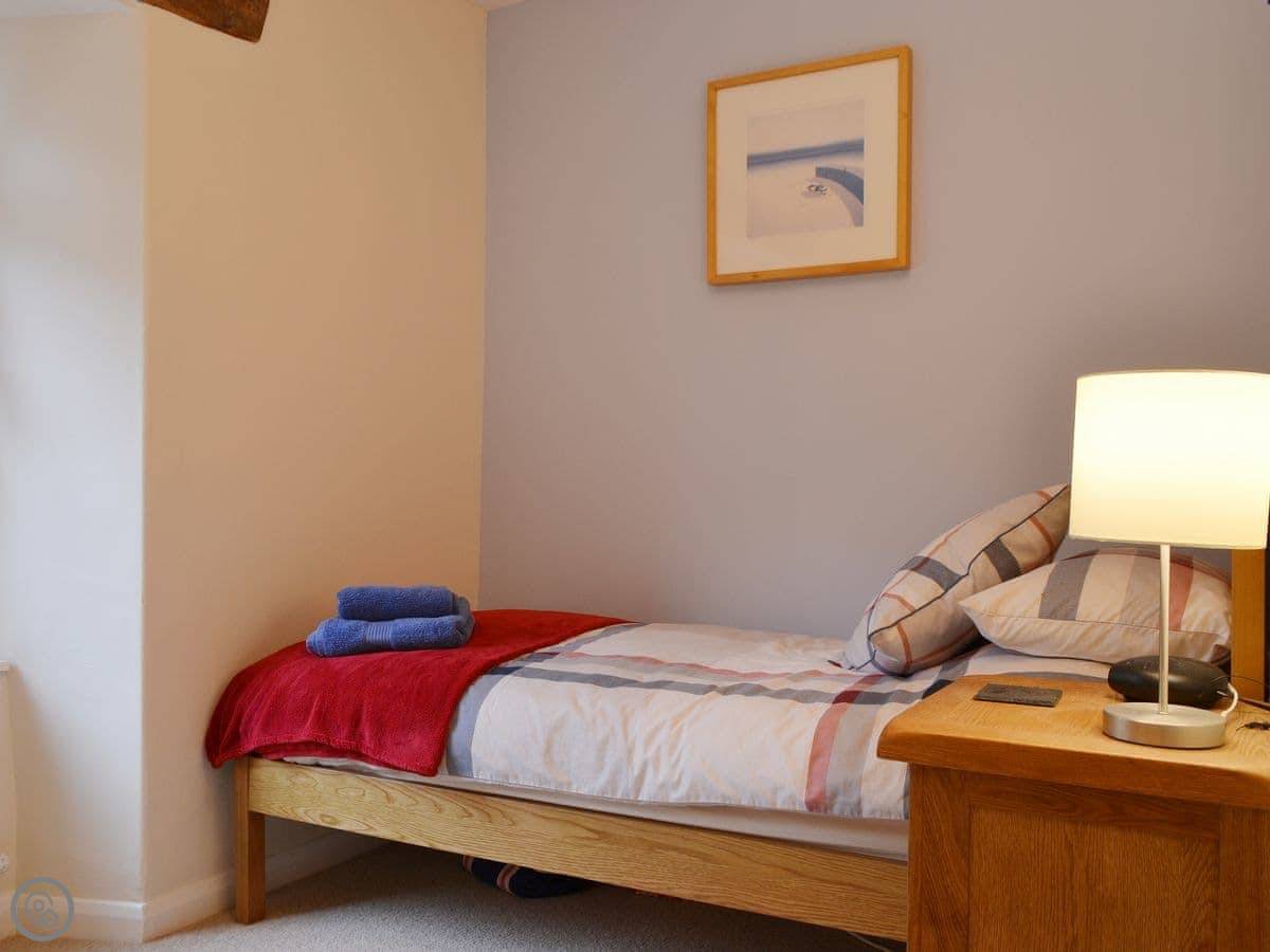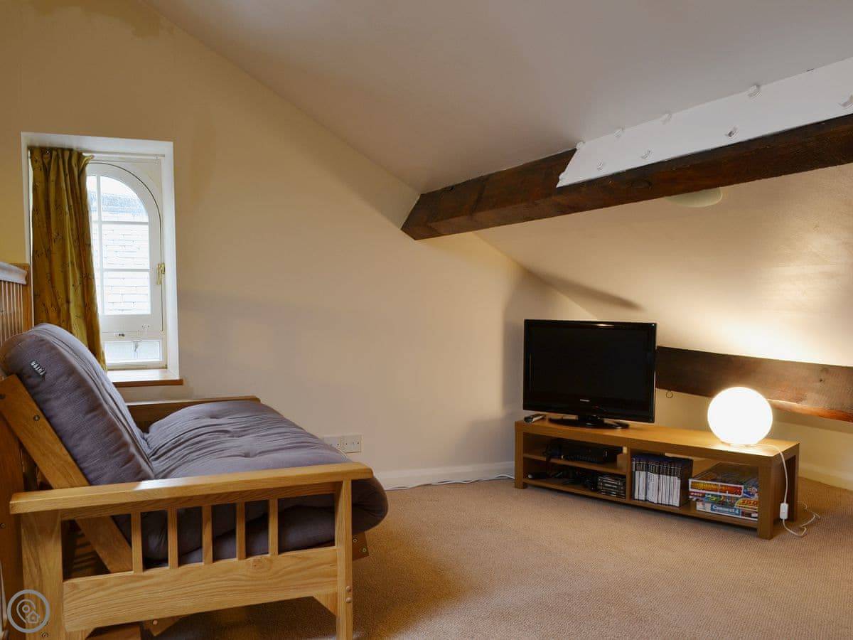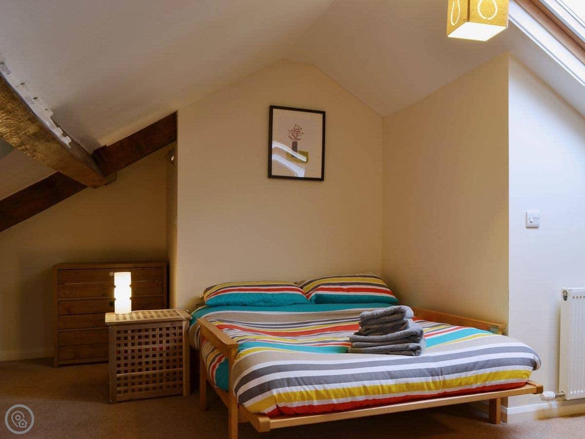 It sleeps five people in four bedrooms. There's one bathroom. It's got a 4 Star rating, so it's comfortable and well looked after. One of the bedrooms is up in the attic with futons, a TV, and an old Playstation 2. Kids tend to like that. The stairs up there are fairly steep, just so you know.