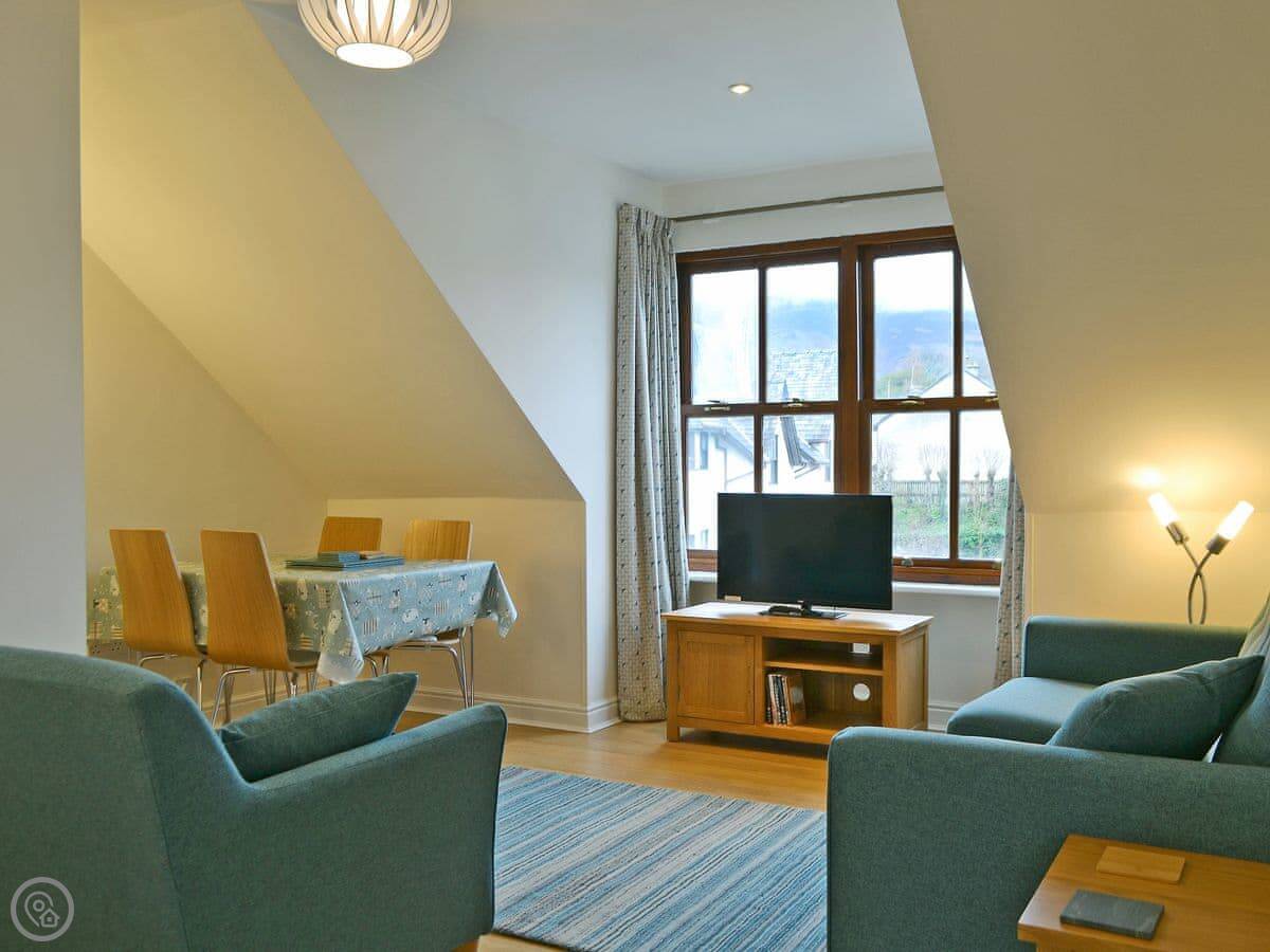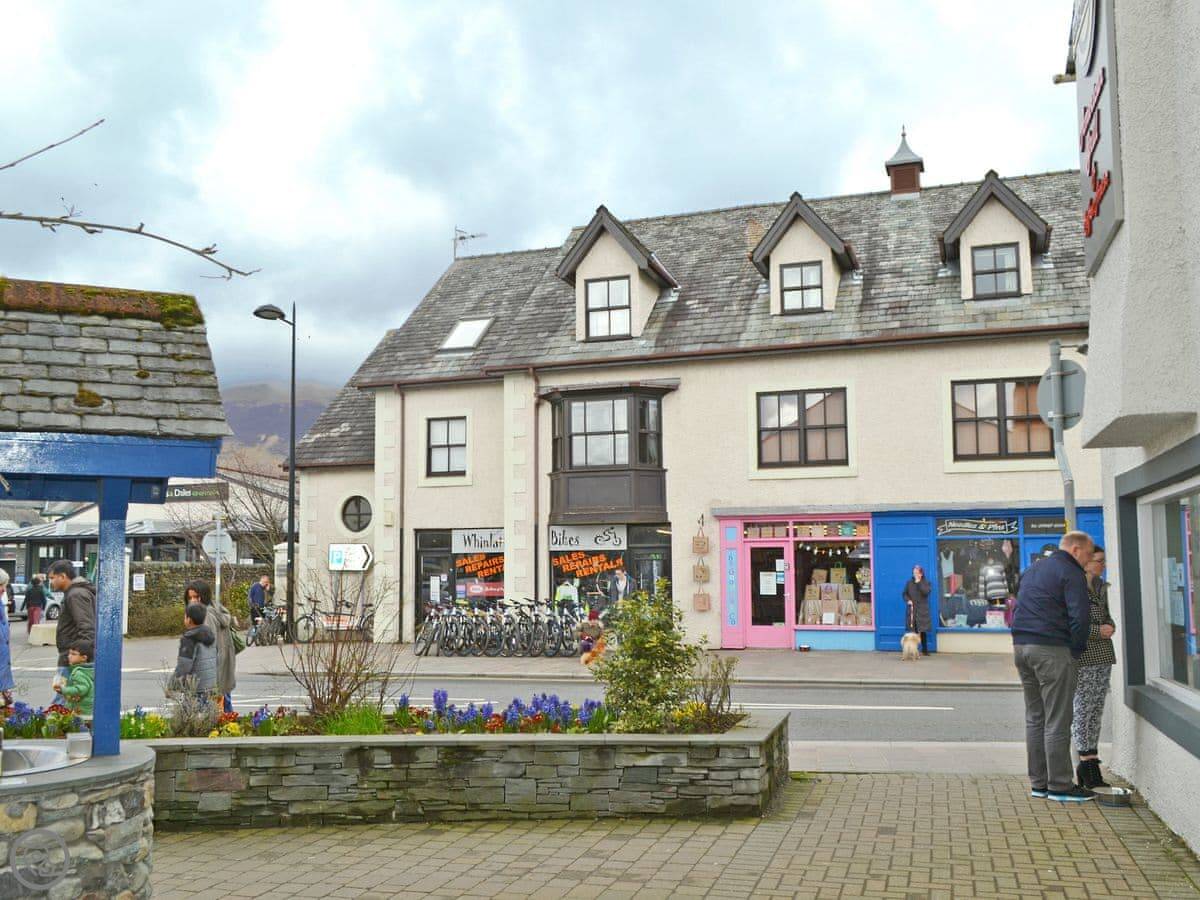 This is Herdwick Heights. It's a first-floor apartment above a row of shops on Keswick's main street. You're right in the middle of town. The bus station is very close if you're coming by public transport.