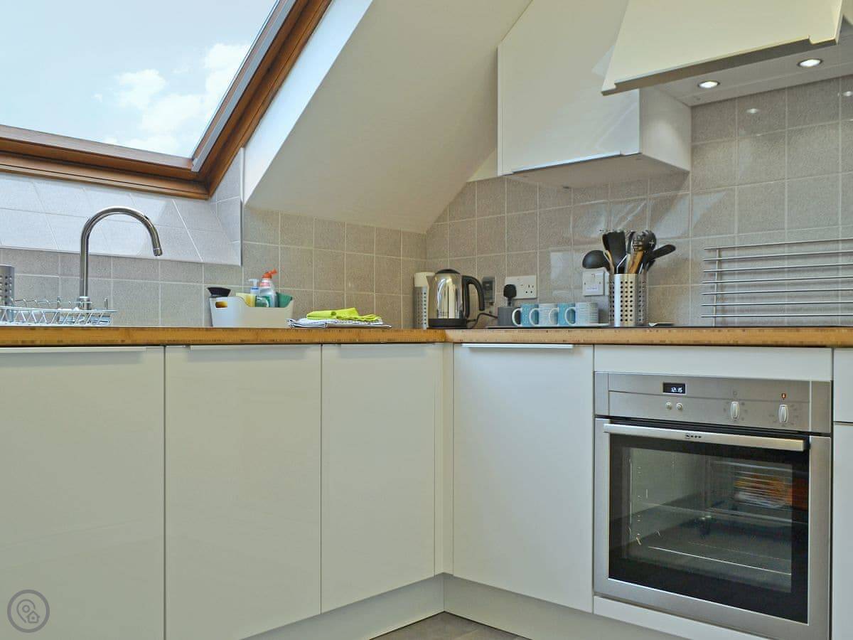 It sleeps four, with two bedrooms and one bathroom. It's got a 3 Star rating. That means it's comfortable and clean, not luxurious. The kitchen has what you need.
