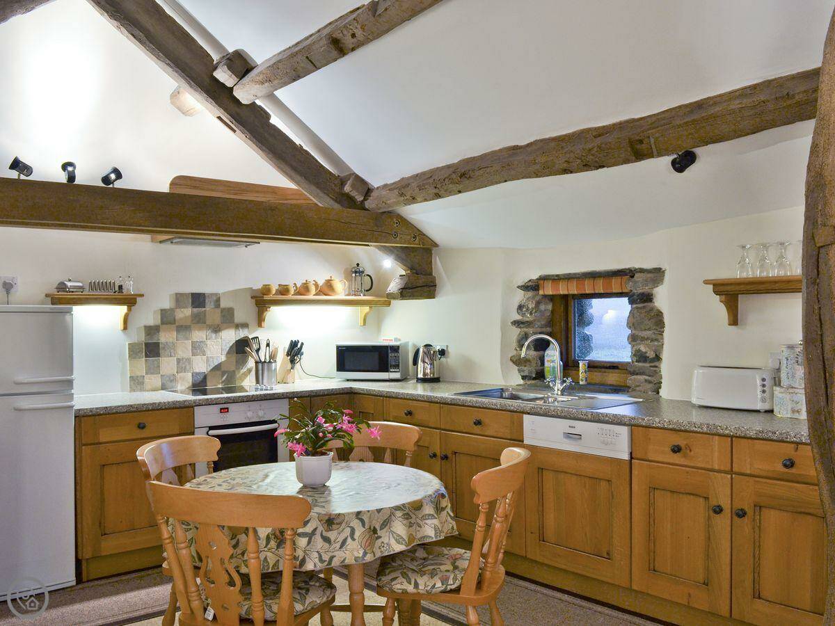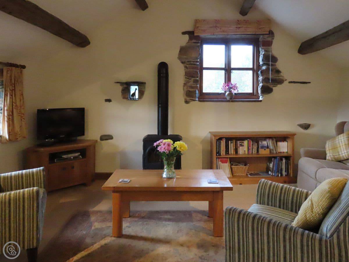 You're on a working farm. There are sheep in the fields, and the owner also keeps some alpacas and donkeys. It's quiet. You can walk straight out from the door onto the lanes or up towards the hills.