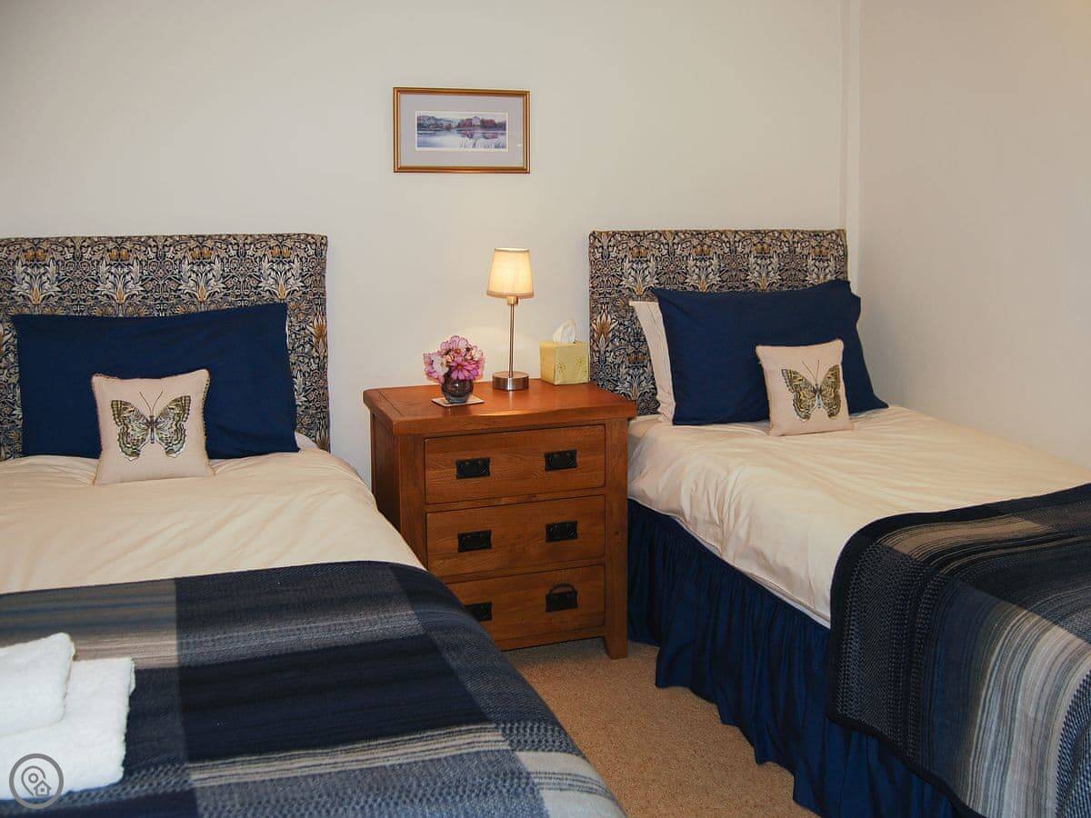 It sleeps four. Two bedrooms and one bathroom on the ground floor. The living area is upstairs, which gives you those views. It's a 4 Star place, so it's comfortable and has what you need.