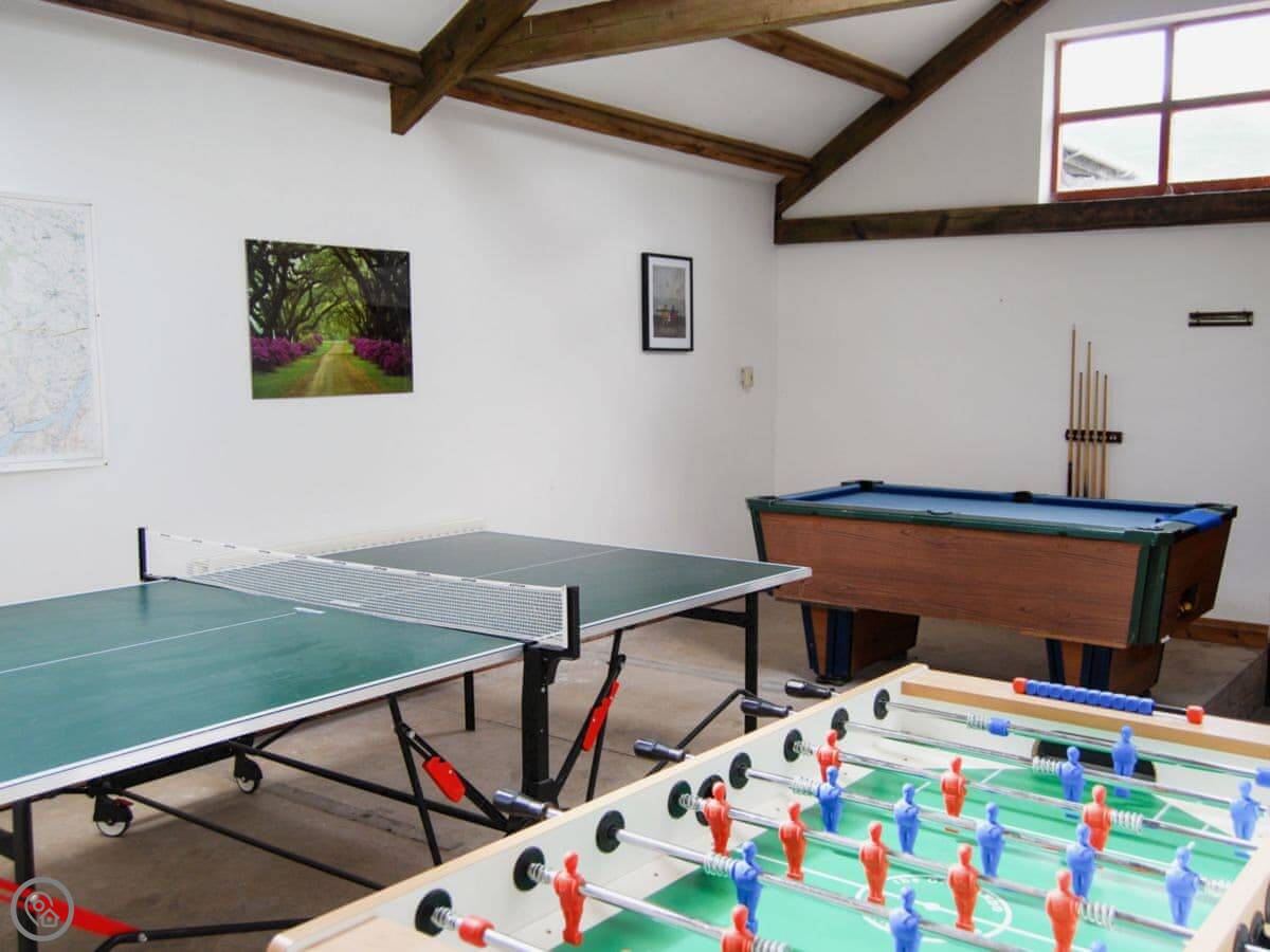 In the barn you've got a dishwasher, washing machine, Wi-Fi, and an enclosed patio area with a BBQ. There's parking right outside. We can take one dog. We provide a cot, highchair, and stairgate if you need them.