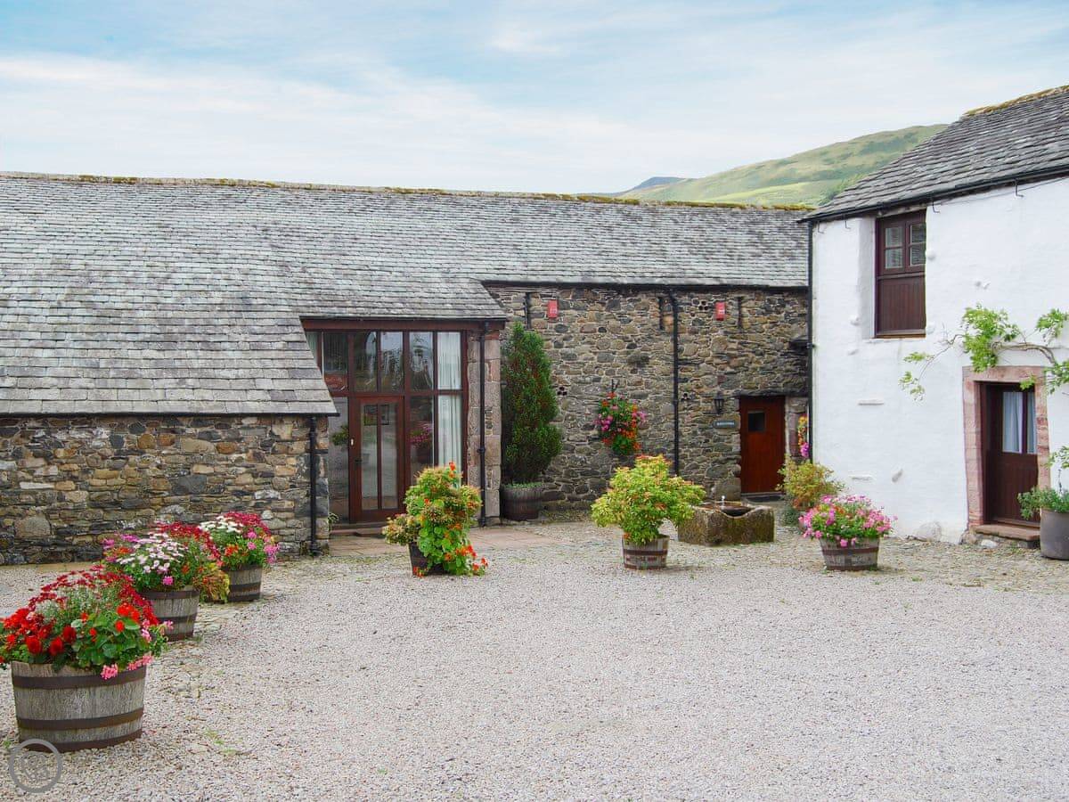 Blencathra is one of the converted barns here at Blakebeck Farm. It's a Grade II listed building, so the walls are thick and the windows are a nice size. It looks out over the fields towards the fells.