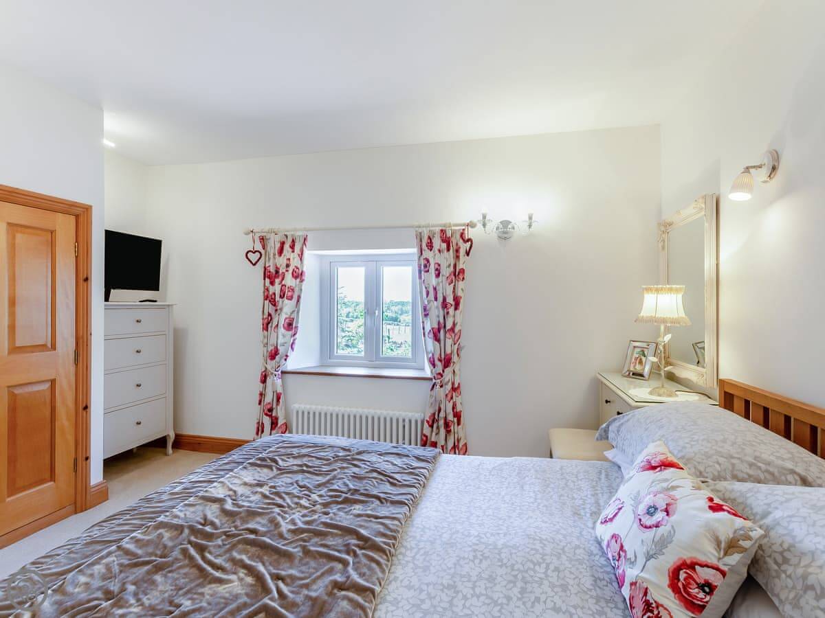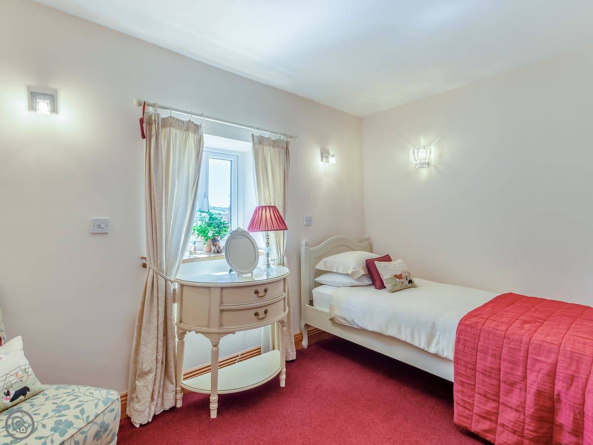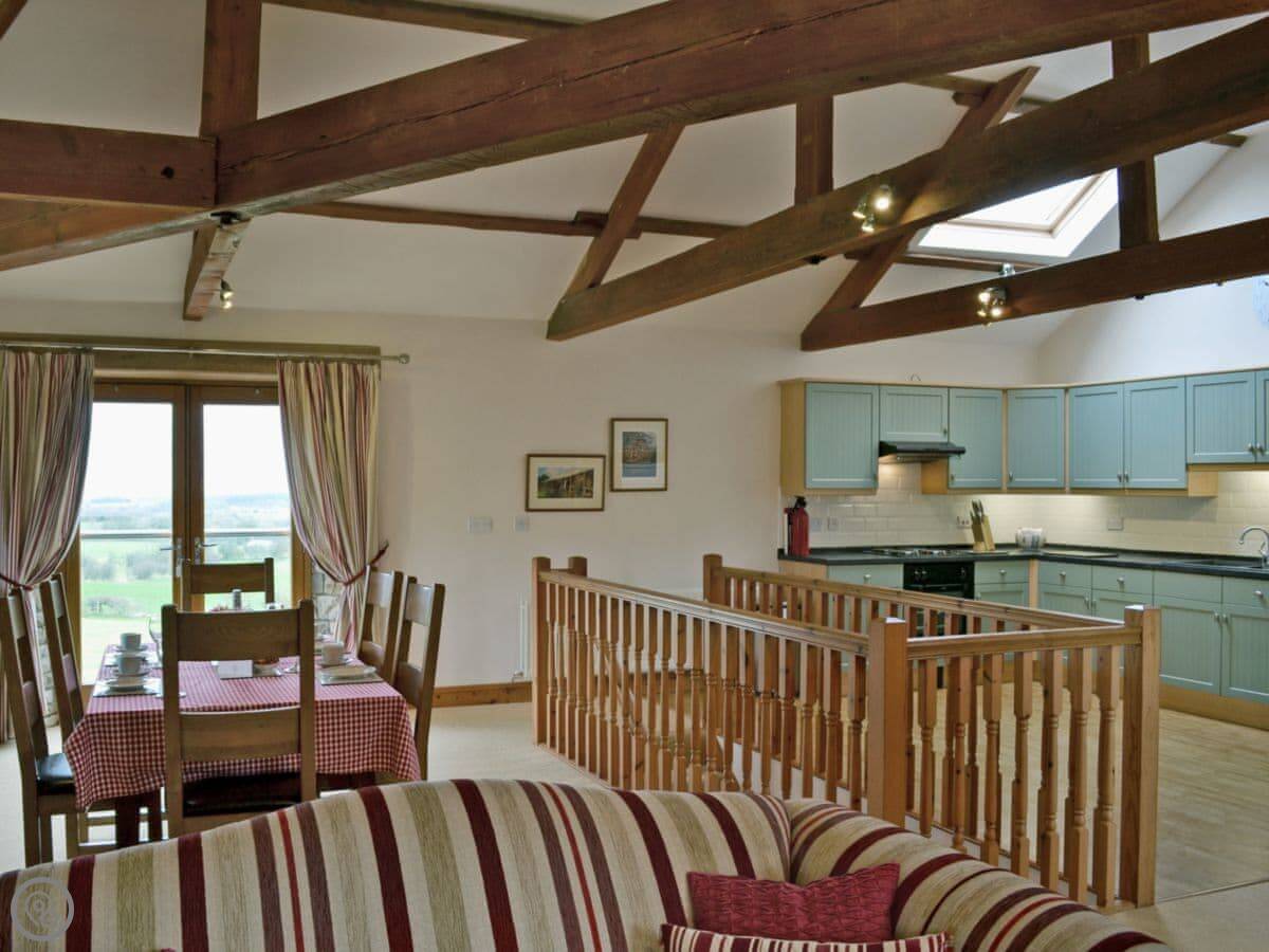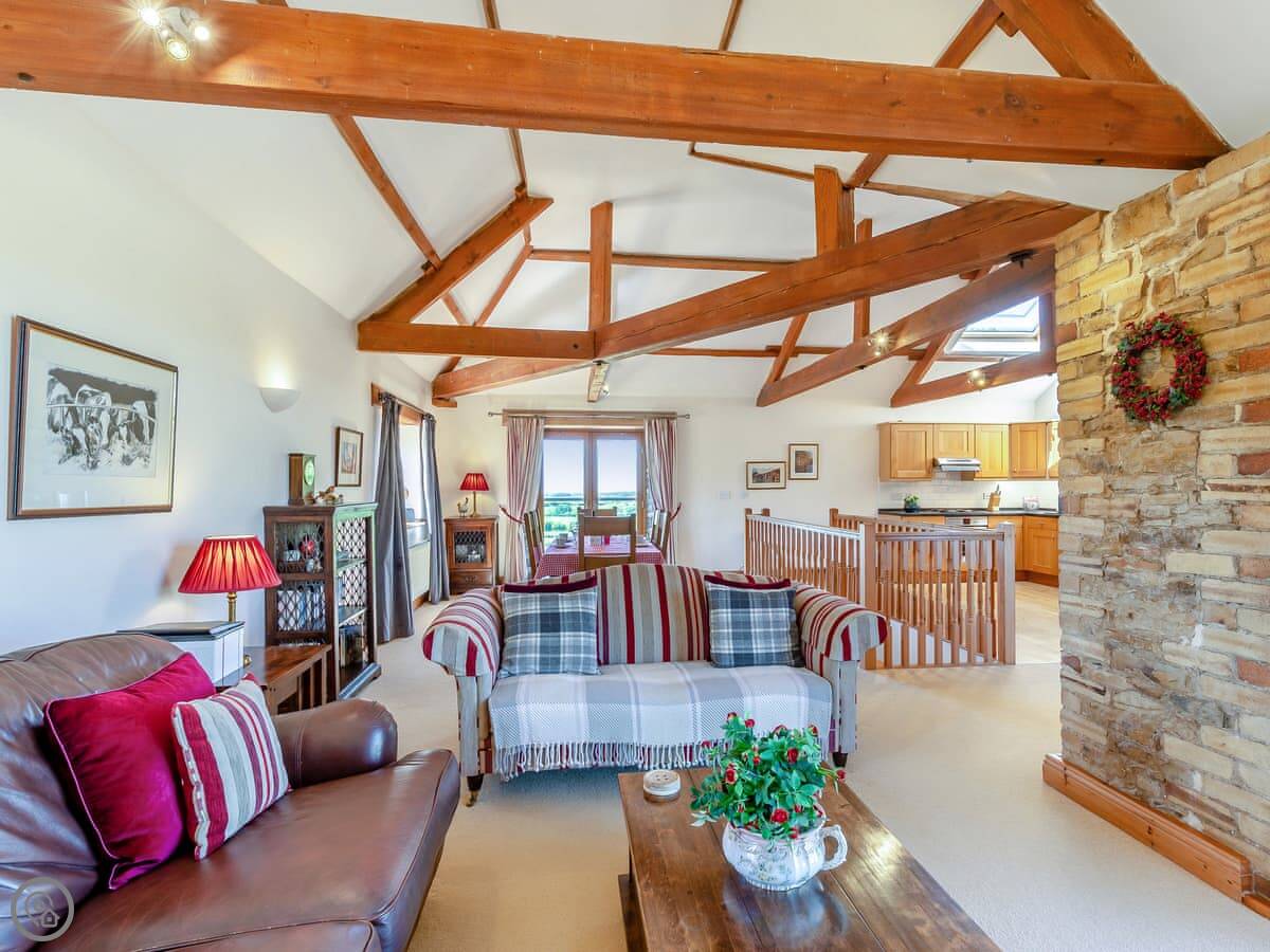 It's a 5 Star place, which basically means it's very well kitted out and comfortable for a cottage. Sleeps four, but in three bedrooms, which is handy. One bathroom. There's an open plan living area with beams and a big window for the view.