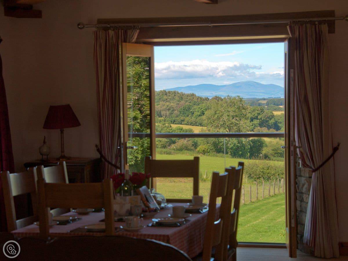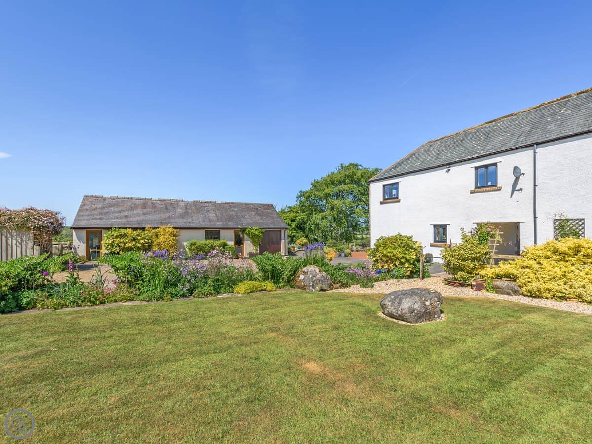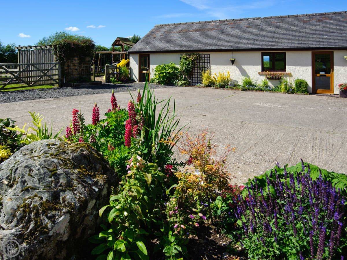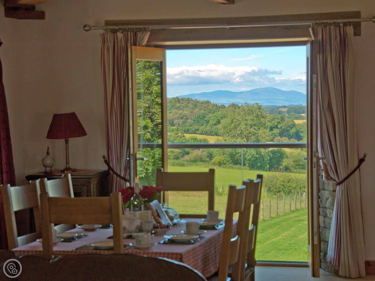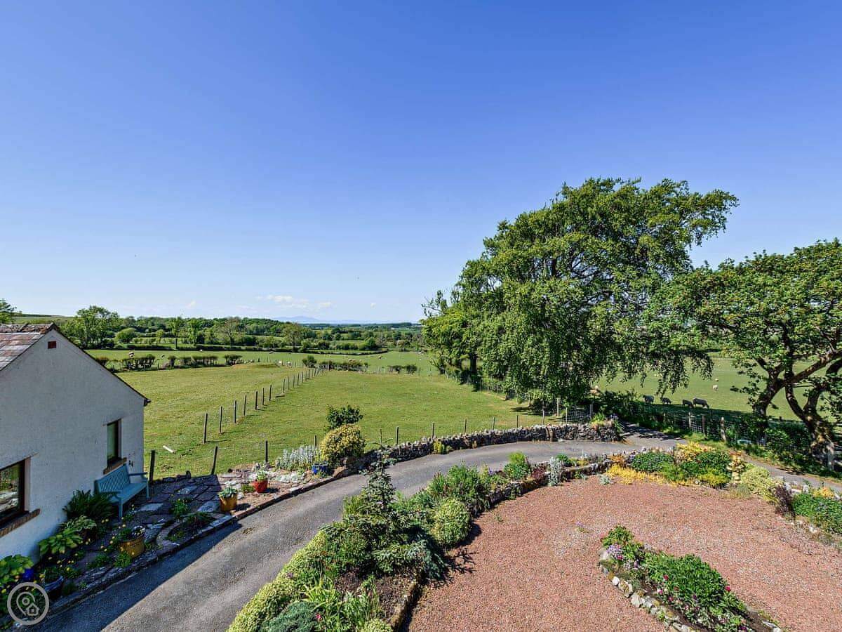 This is Church Cottage on our farm near Ireby. It's one of a few cottages here, but it has its own garden space with a table. The view is the main thing. You look straight out over fields to the fells, and west towards Scotland. On a clear evening, the sunsets over the Solway are something else.
