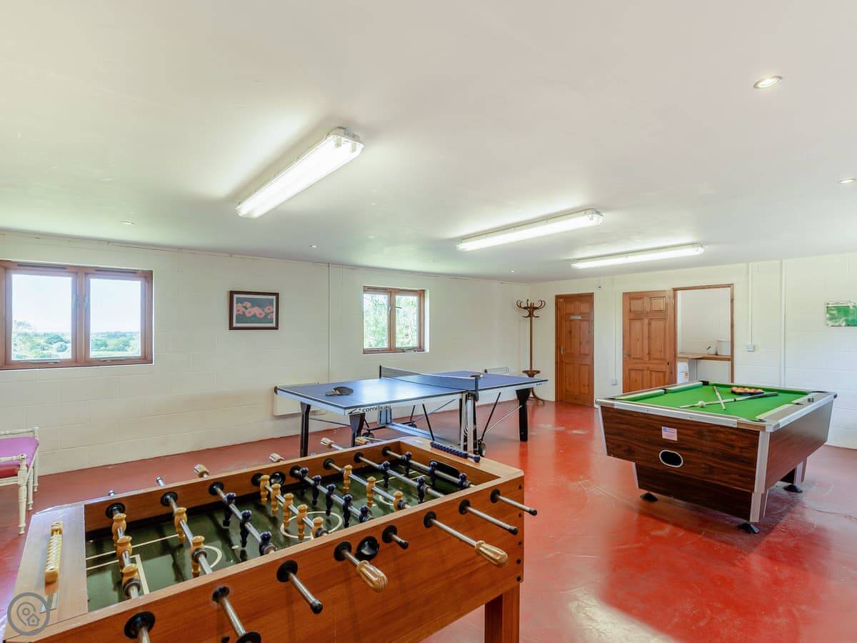 On site, there's a shared games room with a pool table and table tennis, and a separate laundry room with a washer and dryer. Outside, there's a kids' play area with swings and a slide. We've got bike storage if you bring them. There's parking right outside.