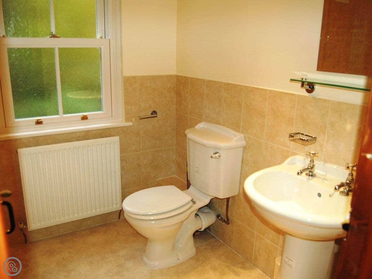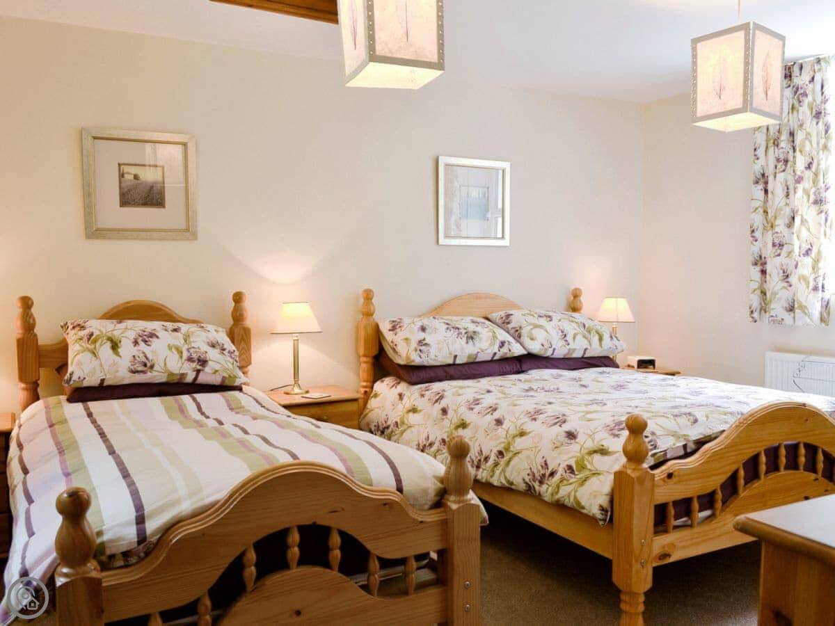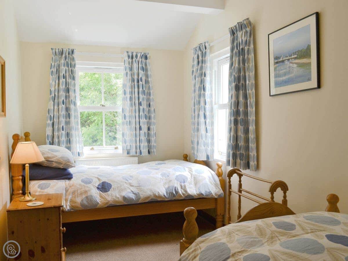 It sleeps seven, in three bedrooms. Two bathrooms, one upstairs and a shower room downstairs. It has a four-star rating. It’s comfortable and well-equipped. There are two living rooms, so people can split up if they want to. The stairs are normal.