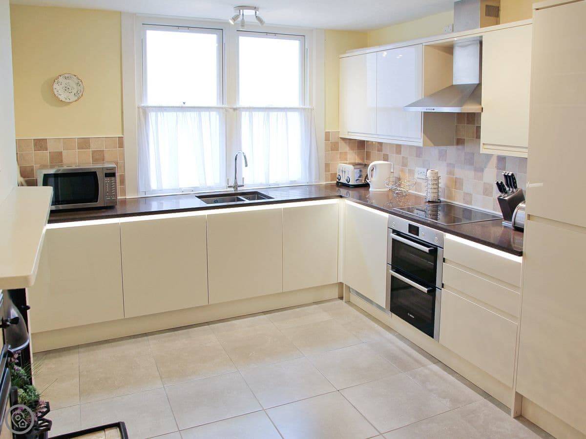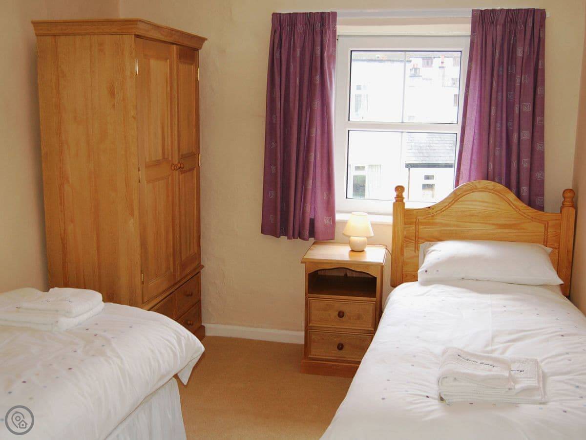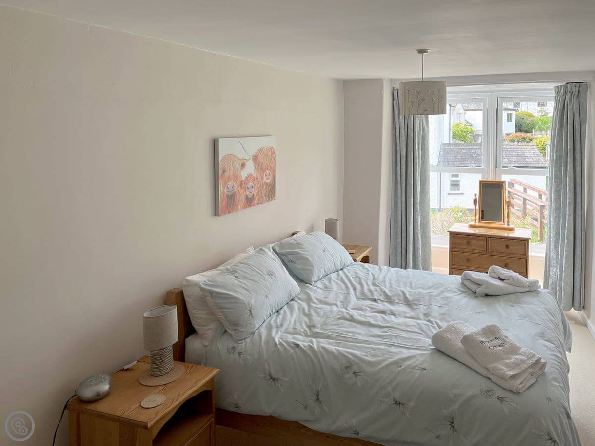 Inside, there’s a woodburner in the living room. The stairs are standard for a cottage. The kitchen has a dishwasher and there’s a washing machine too. Bedding and towels are included. We can provide a cot.