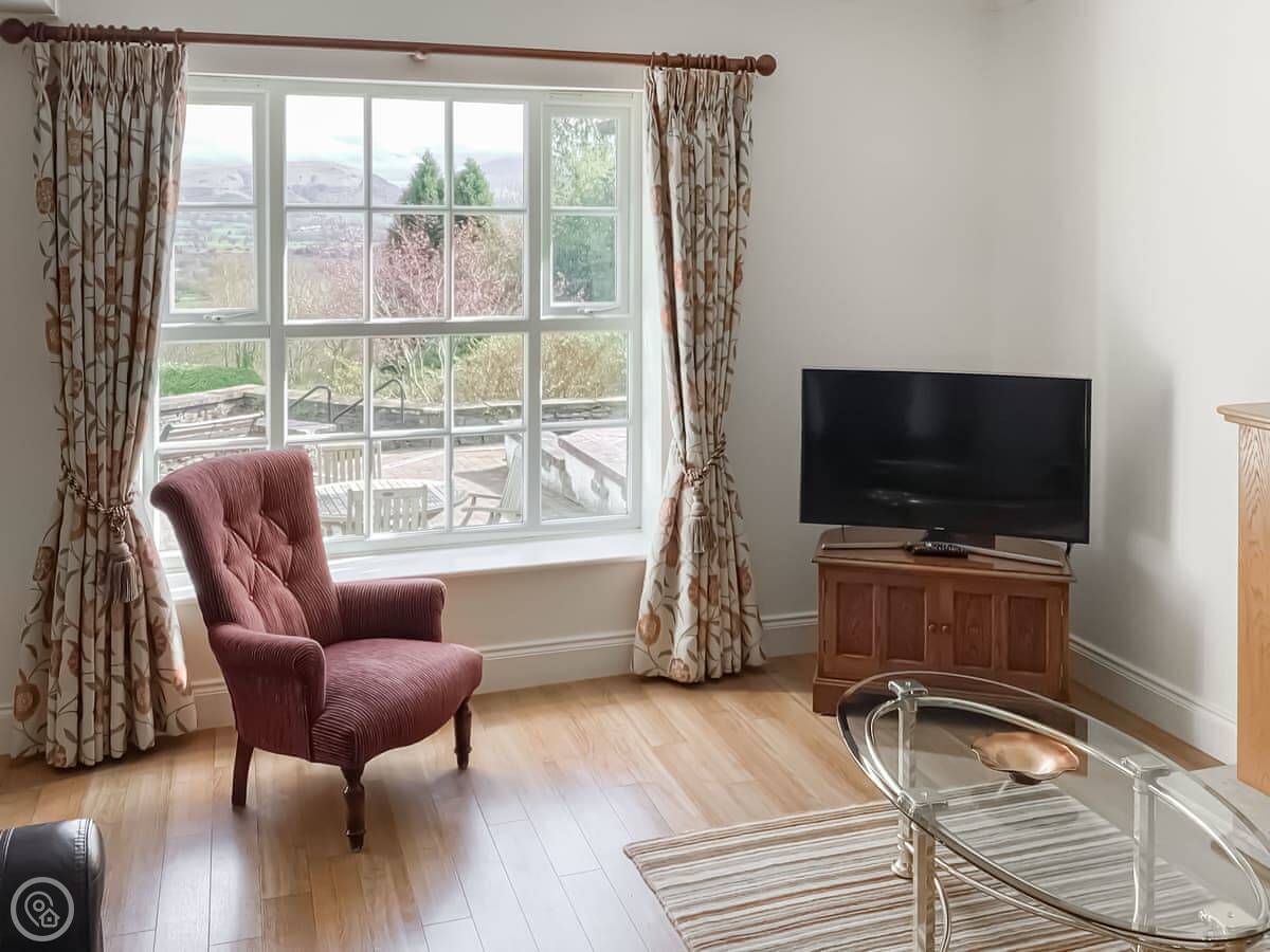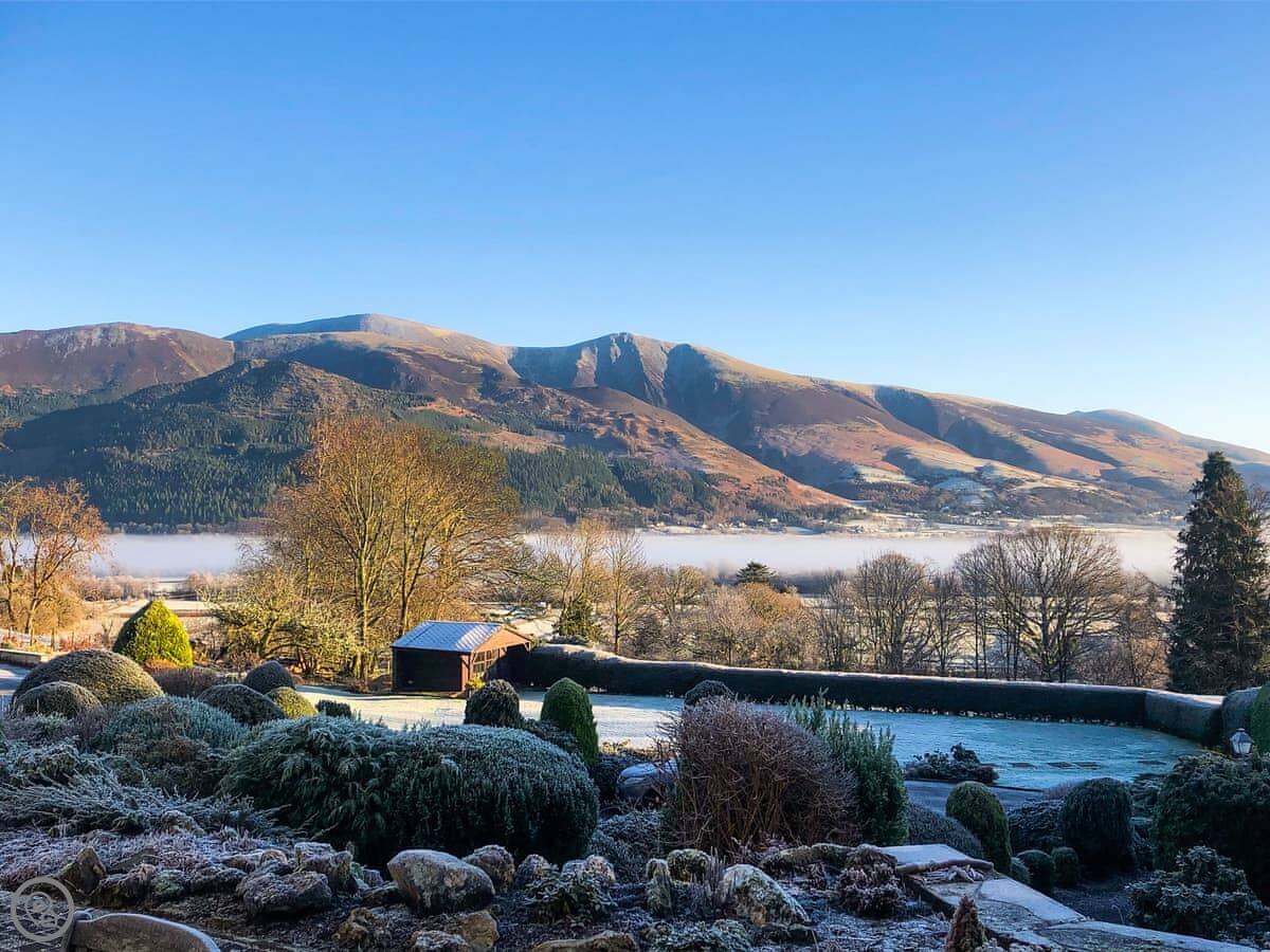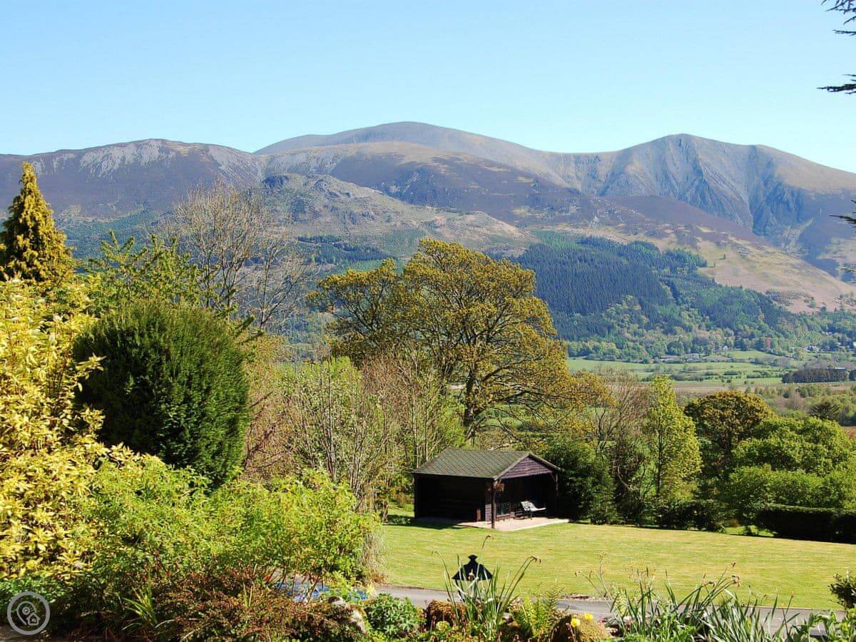 You get a nice bit of garden with a terrace. The front terrace looks straight out at the Skiddaw fells. The view is excellent. There’s also a back terrace where you can step right onto a bridleway.