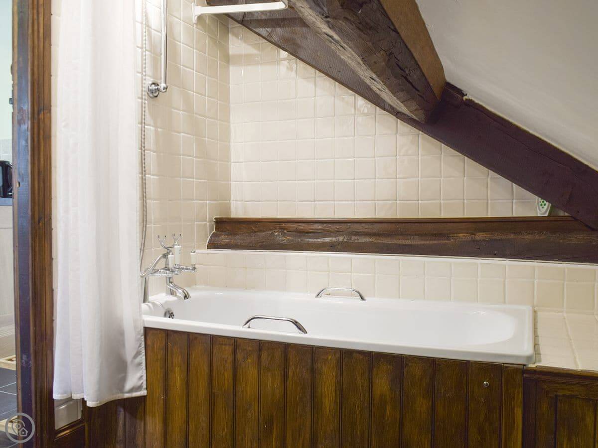 It used to be a corn mill. The original water wheel is still there, it’s about fifteen feet tall. You can see it from the living room window. The beams are low in a few places, just so you know.