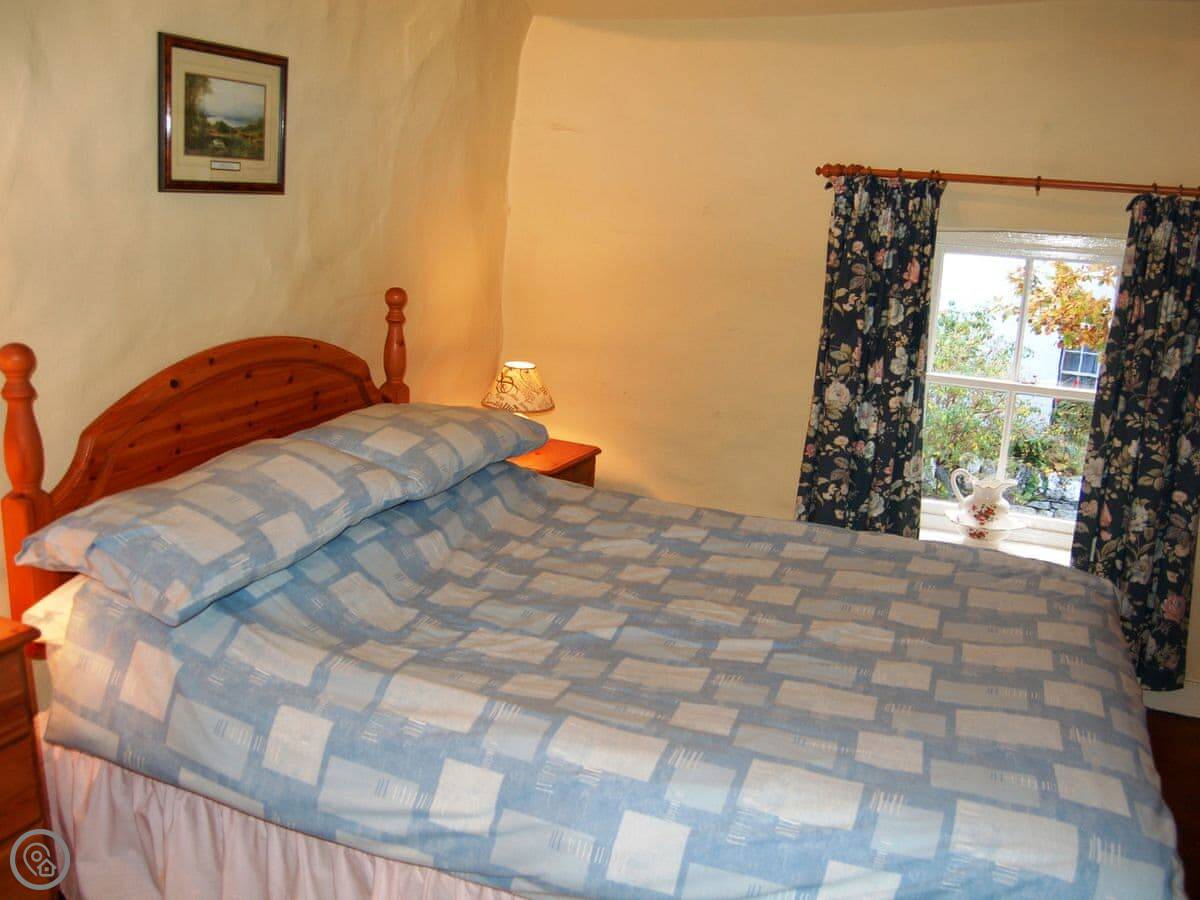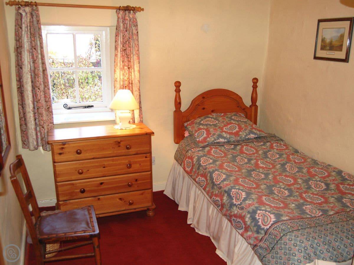 It sleeps three. There are two bedrooms and one bathroom. It's got a 3 Star rating, so it's comfortable and clean, not luxury. The stairs inside are a bit narrow, like most cottages here.