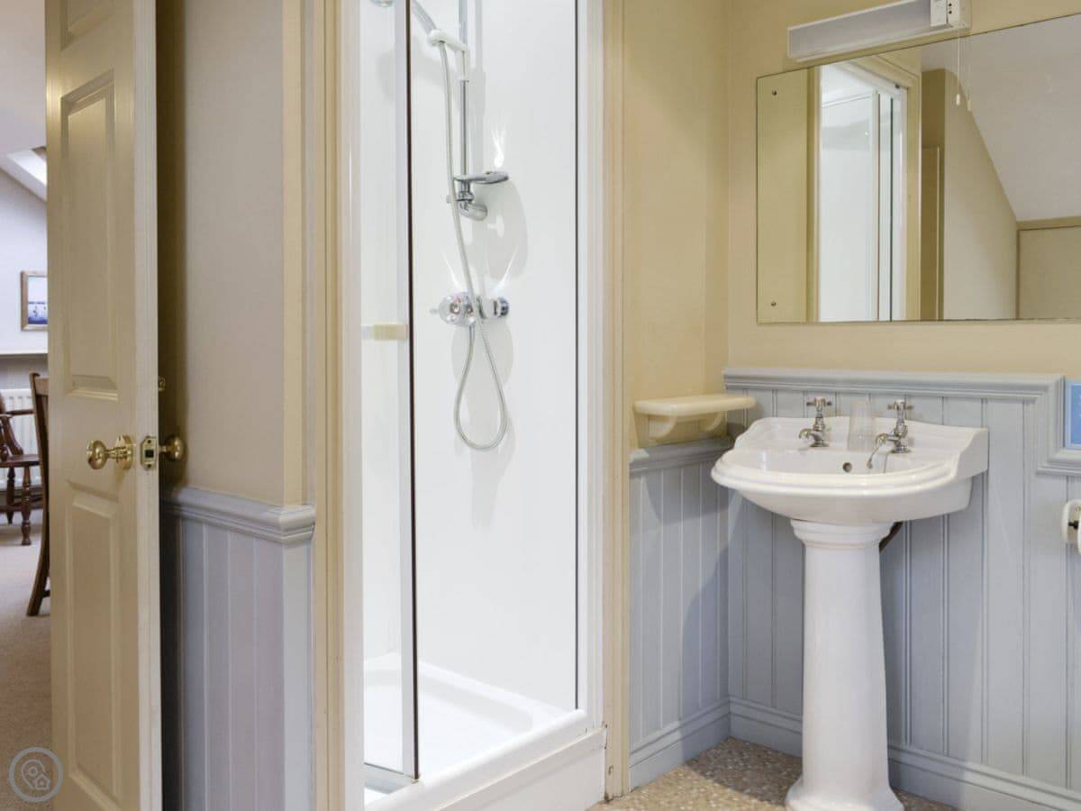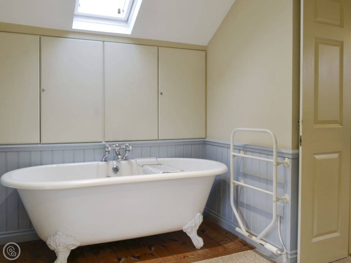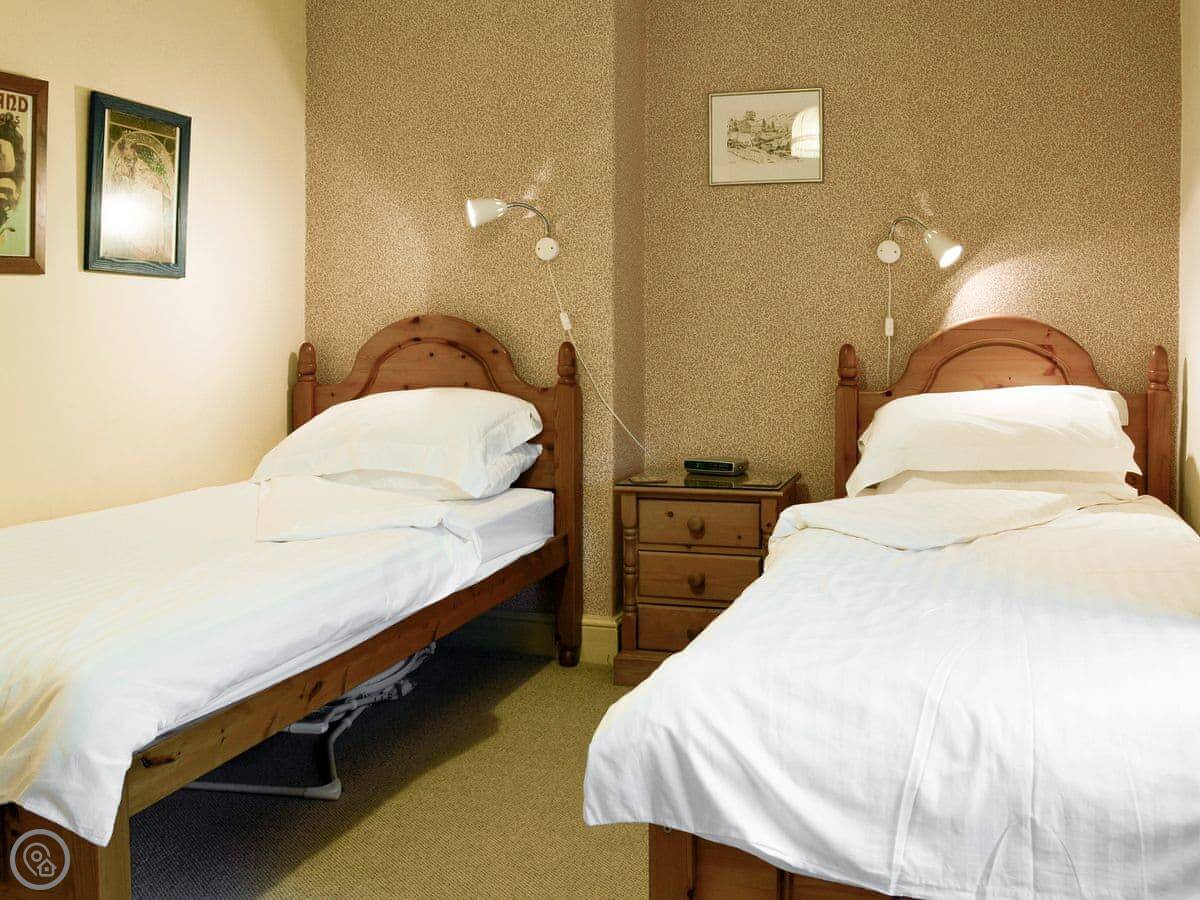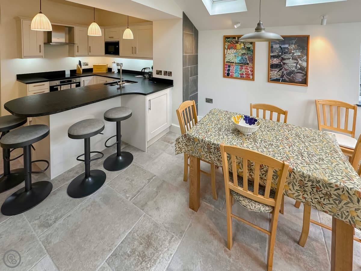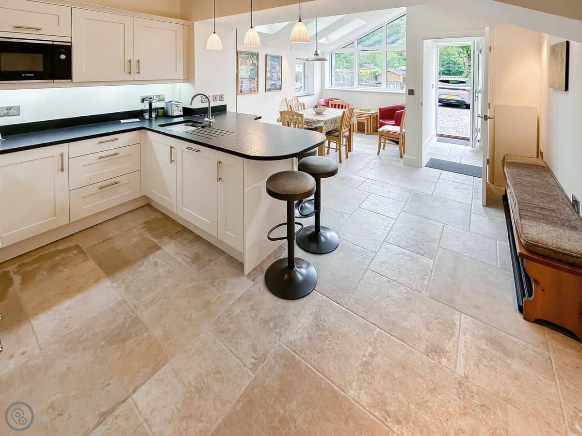 The cottage sleeps six. Three bedrooms, two bathrooms. It's got a 4 Star rating. We've just had the ground floor completely redone, so the kitchen is new and there's a proper boot room for drying off wet gear. Underfloor heating downstairs.