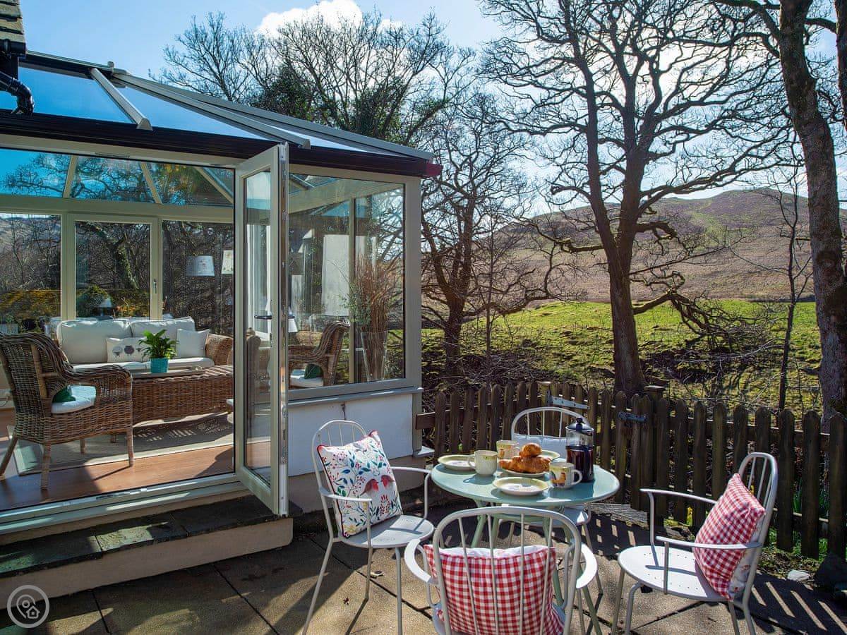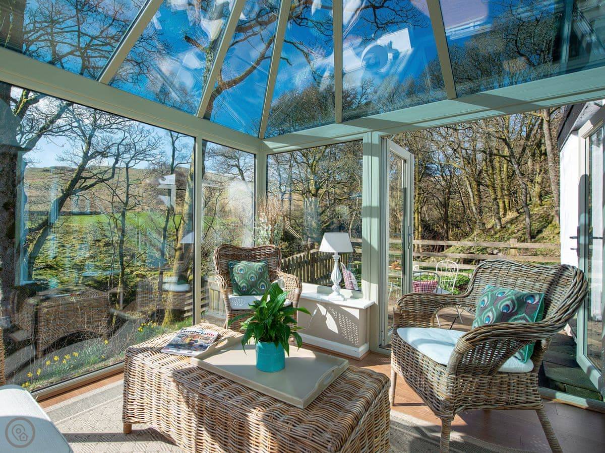 The main thing is the spot. You can sit in the conservatory and watch the beck go by. Red squirrels come to the garden. The living room looks out the same way and has a wood burner for the evenings.