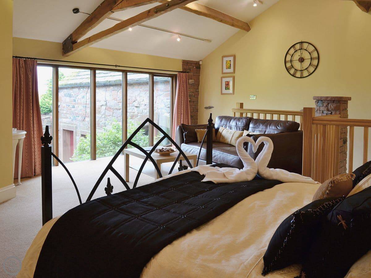 These two characterful barn conversations have an interconnecting door and may be let separately or together for up to 6 people. It is situated in the village of Newton Reigny, where the Lilacs was originally a farm and the 2 cottages were the Byre and adjoining barn. More recently it was the home to Simon Bull, a well known Cumbrian artist and Lilac Studio was where he did his painting. The quality of accommodation in each cottage is to a very high standard, including top quality facilities and character beamed ceiling. From the master bedroom, there is a leather settee where you can relax and enjoy the views towards the Pennine Hills.