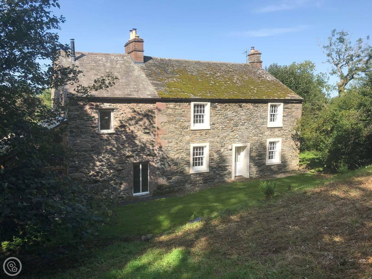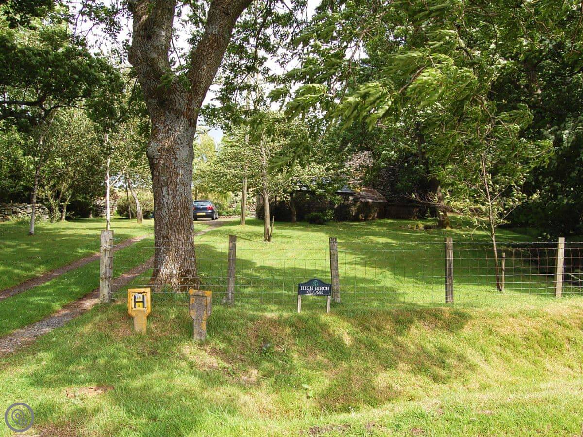 High Birch Close is a farmhouse in Thackthwaite. It's detached, so you won't have neighbours through the wall. The garden is big, nearly an acre. It's mostly lawn with some woodland at the back.