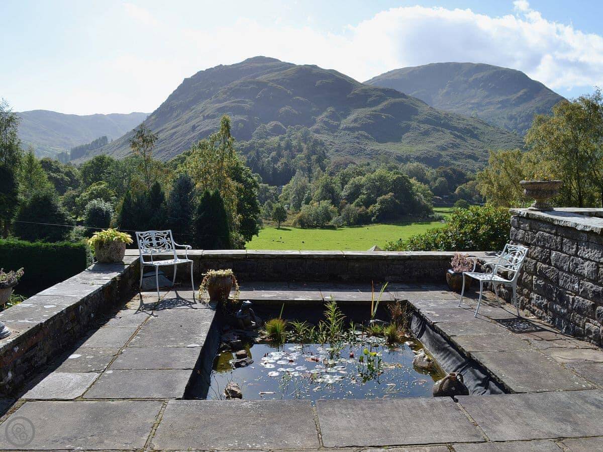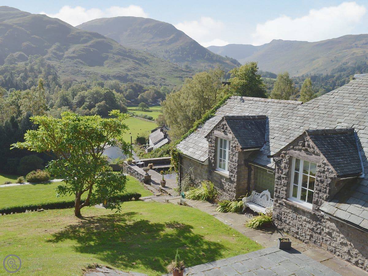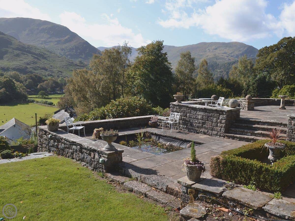 Grey Walls is an impressive and quite outstanding detached country house, standing in an elevated position within extensive grounds. Its superb Lakeland location, in the village of Patterdale, lies at the southern end of Ullswater. Architect designed, it incorporates fascinating features such as oriel windows with views to Striding Edge and Helvellyn, all set in dressed stone. Internally the accommodation has a unique character, with oak panelling and a 17th-century court cupboard. The house manages to incorporate cottage charm, with the majority of rooms taking advantage of the exquisite outlooks. The grounds are delightful; they are all south facing and include extensive terracing, with water features, fish pond and broad areas of lawn with rhododendron bushes. There are magnificent fell views in all directions. Kirkstone Pass rises up to the south of the village dropping down into Ambleside and Windermere, so the location is central to both the North and South Lakes, and therefore excellent for touring the National Park. Above the valley behind Patterdale is the famous Striding Edge, a knife edge ridge, leading onto Helvellyn and is popular among more serious walkers. For a less strenuous walk you will find Aira Force, a short drive north, which is the Lake District’s most famous waterfall. There are watersports available on the lake and the steamer is a beautiful way to enjoy the scenery.