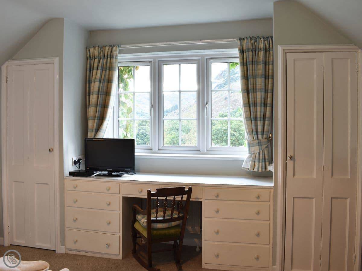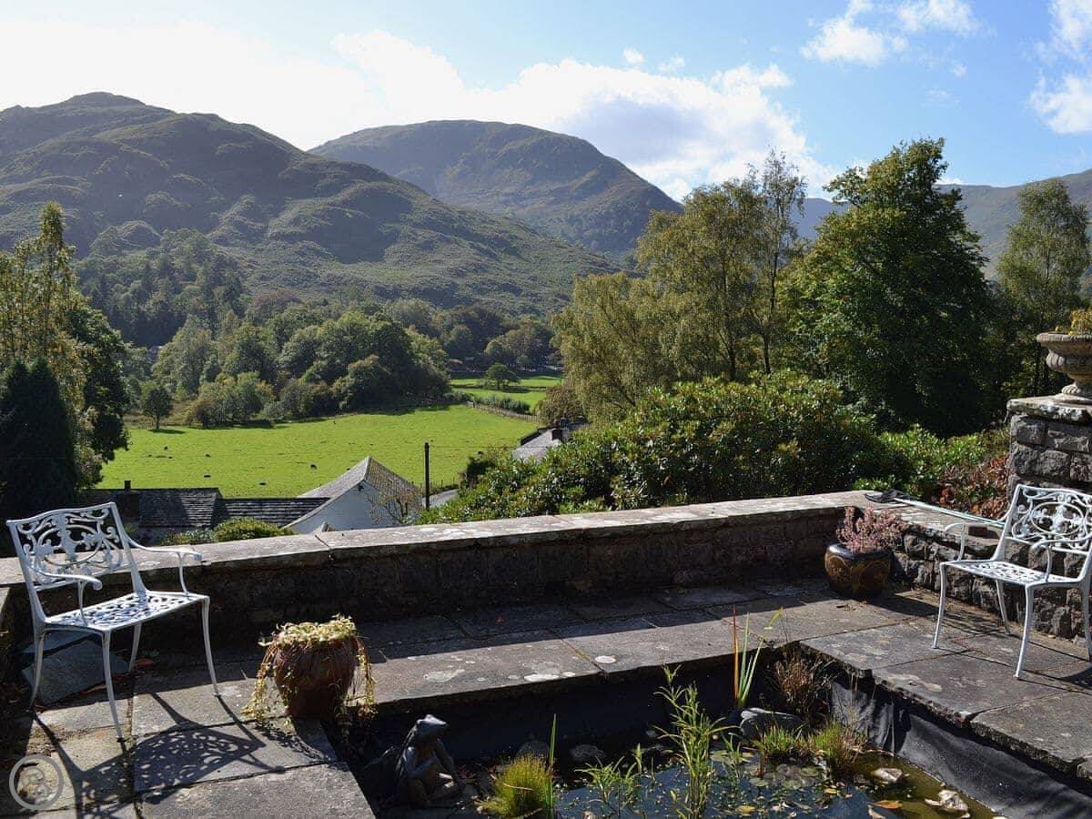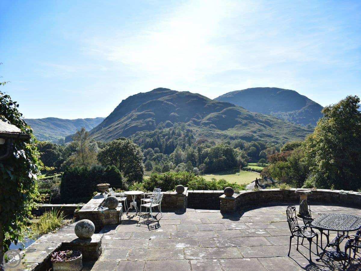Grey Walls is an impressive and quite outstanding detached country house, standing in an elevated position within extensive grounds. Its superb Lakeland location, in the village of Patterdale, lies at the southern end of Ullswater. Architect designed, it incorporates fascinating features such as oriel windows with views to Striding Edge and Helvellyn, all set in dressed stone. Internally the accommodation has a unique character, with oak panelling and a 17th-century court cupboard. The house manages to incorporate cottage charm, with the majority of rooms taking advantage of the exquisite outlooks. The grounds are delightful; they are all south facing and include extensive terracing, with water features, fish pond and broad areas of lawn with rhododendron bushes. There are magnificent fell views in all directions. Kirkstone Pass rises up to the south of the village dropping down into Ambleside and Windermere, so the location is central to both the North and South Lakes, and therefore excellent for touring the National Park. Above the valley behind Patterdale is the famous Striding Edge, a knife edge ridge, leading onto Helvellyn and is popular among more serious walkers. For a less strenuous walk you will find Aira Force, a short drive north, which is the Lake District’s most famous waterfall. There are watersports available on the lake and the steamer is a beautiful way to enjoy the scenery.