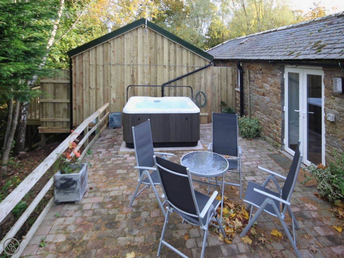 Nuthatch Cottage is in Brocklebank, on the northern edge of the Lake District. It's a stone-built cottage with its own hot tub.