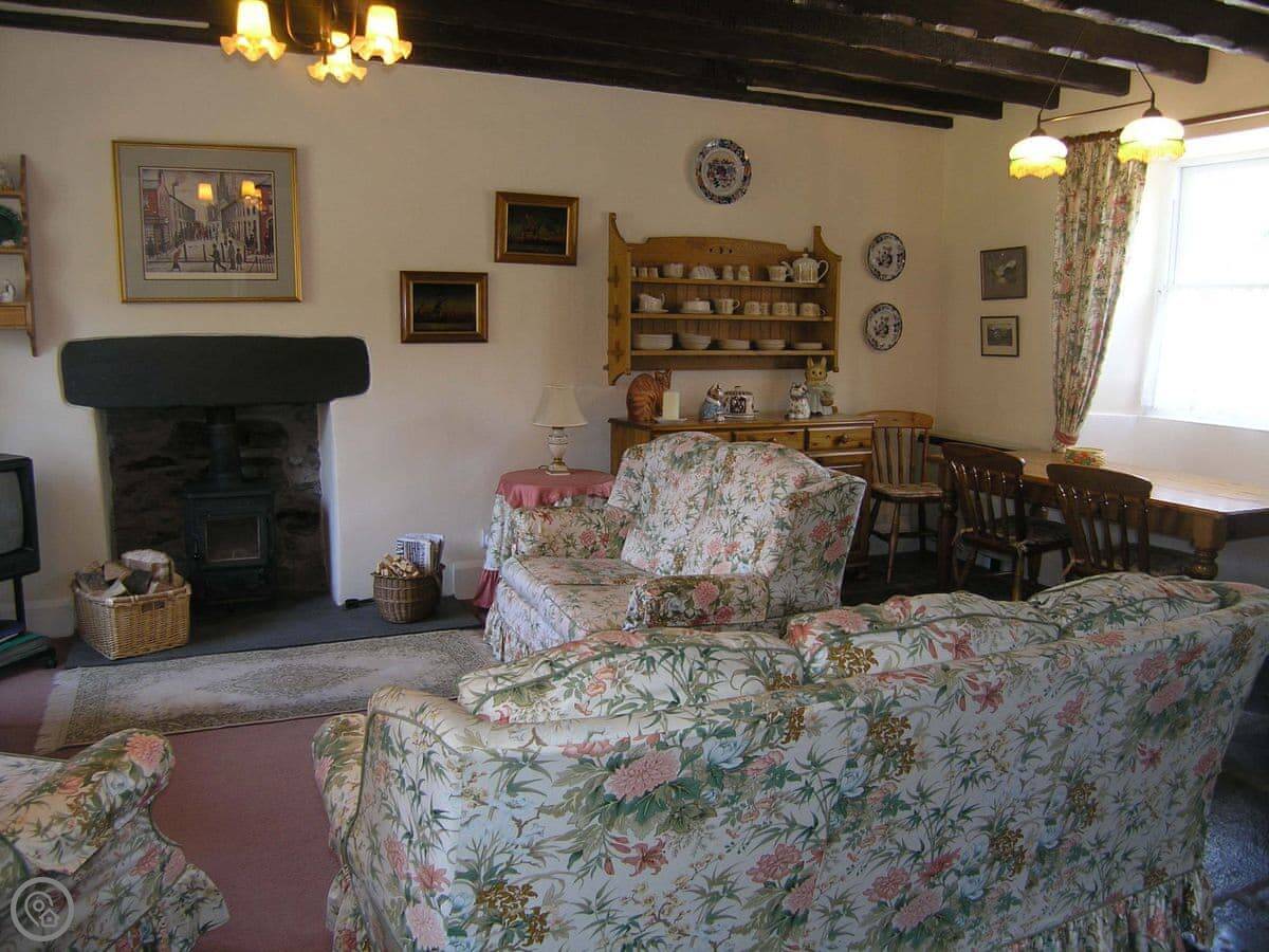 For facilities: there's a wood burning stove for when it's cold, a TV, parking right outside, and an enclosed garden at the back. Bedding is included, and we can put a cot in if you need one. No pets, I'm afraid, as it's a working farm.