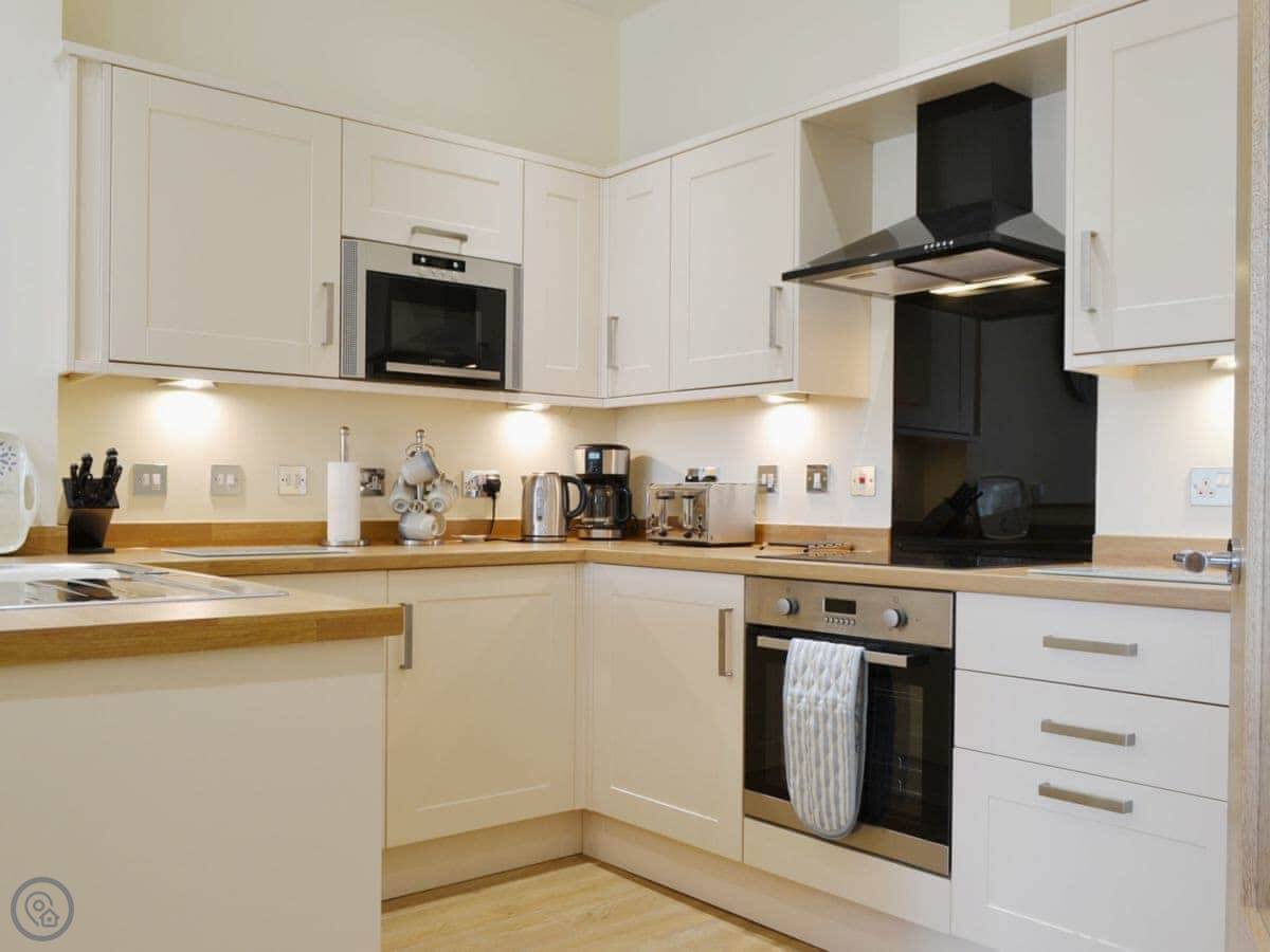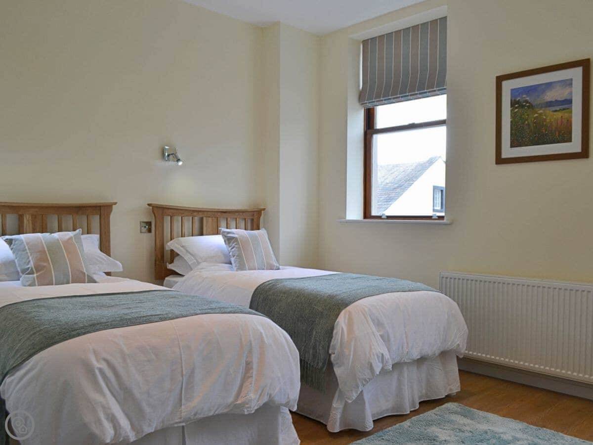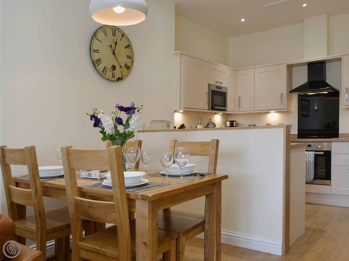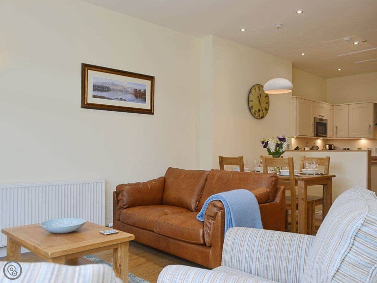 It sleeps four. Two bedrooms, both with their own bathroom. One's got a shower, the other has a bath with a shower over it. It's got a 4 Star rating. It's modern inside, everything's in good condition.