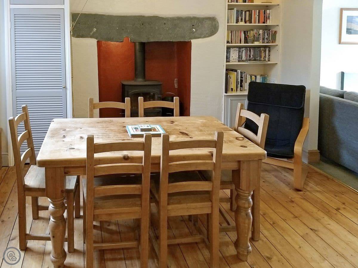 Inside, it's got what you need: a woodburning stove, dishwasher, washing machine, wifi, and TV. Bedding and towels are included. We can provide a cot and highchair. The stairs are typical for a cottage of this age, so they're a bit steeper than in a modern house.
