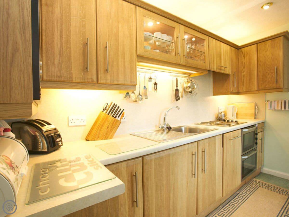 The Garden Flat is a superb ground floor apartment at Badgers Rake with views over the fell. It is warm and comfortable with leather sofa and chair, dining table and chairs, a well-equipped kitchen and patio doors leading to spacious communal garden. With its enviable position above the village of Ambleside with magnificent views over Loughrigg and the surrounding fells, it is still just a short walk to the centre of Ambleside and all the local shops, bars and restaurants. From the front door, you can access Wansfell, amazing views and great walks.