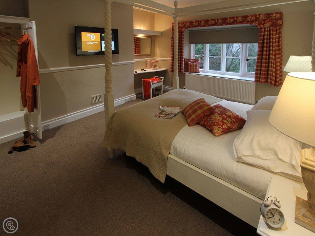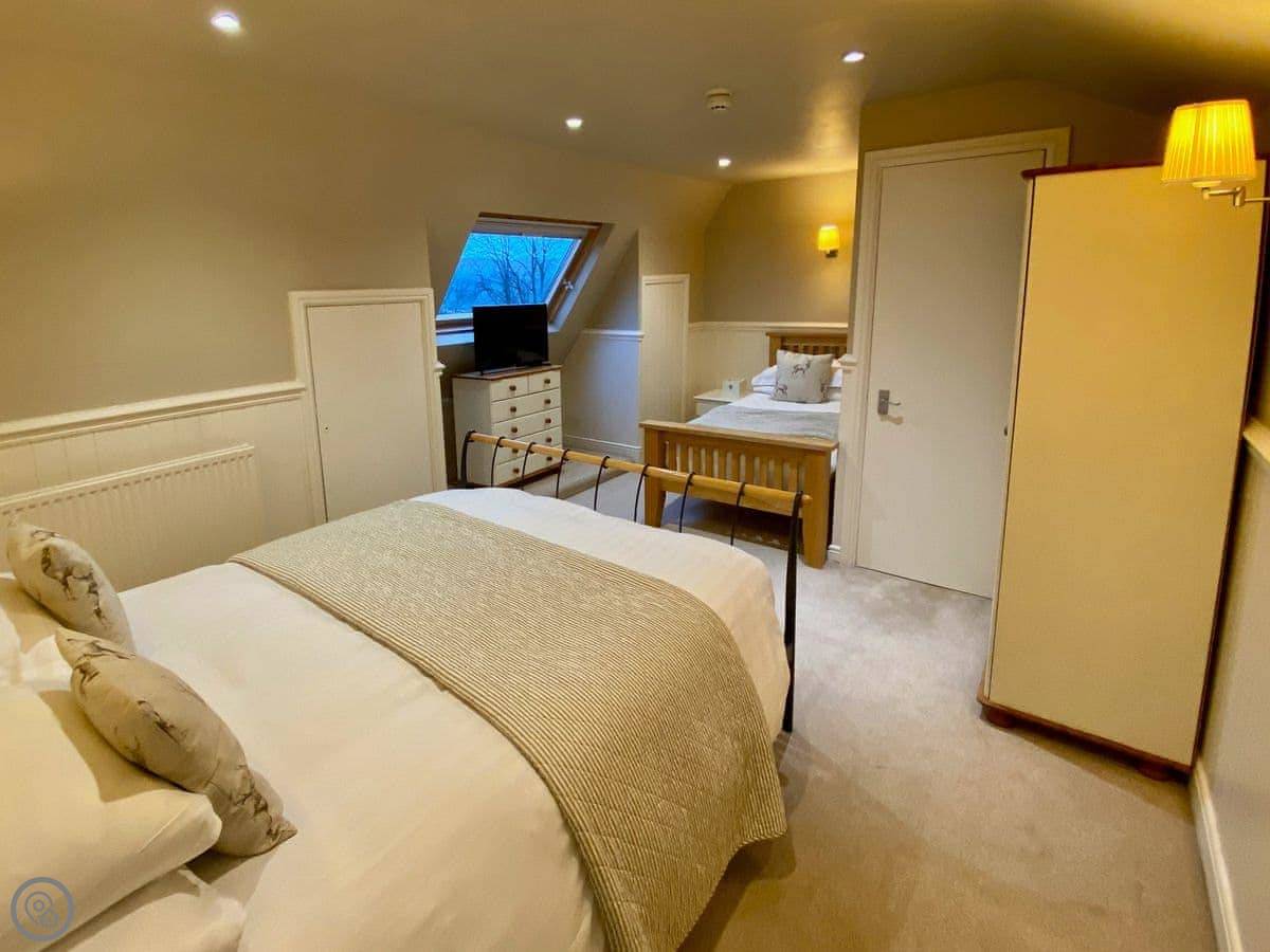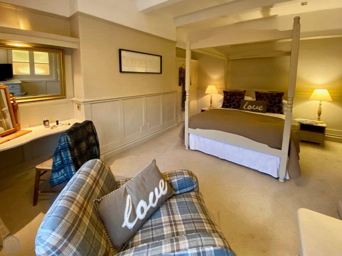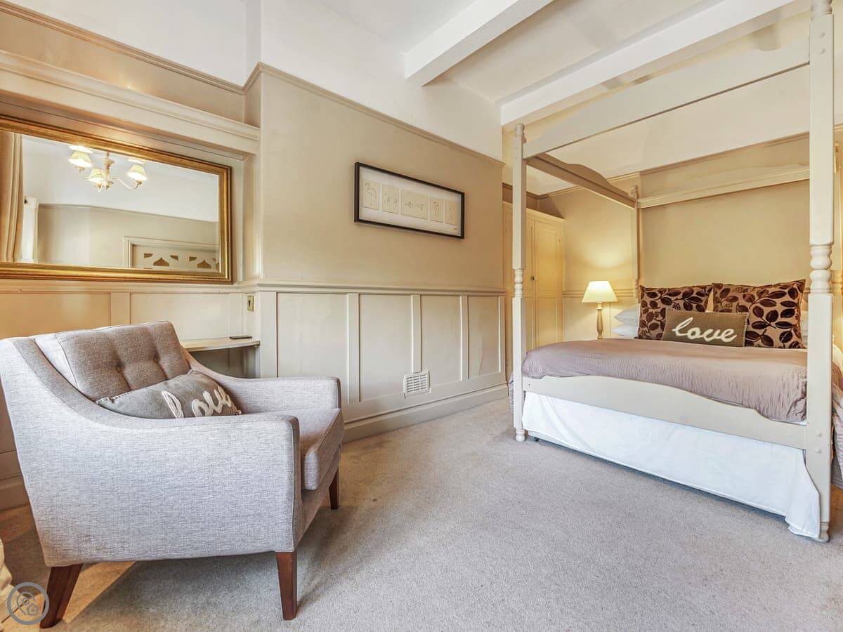 Each bedroom has its own bathroom or ensuite, which is really useful with that many people. There are two four-poster beds. The stairs are normal.