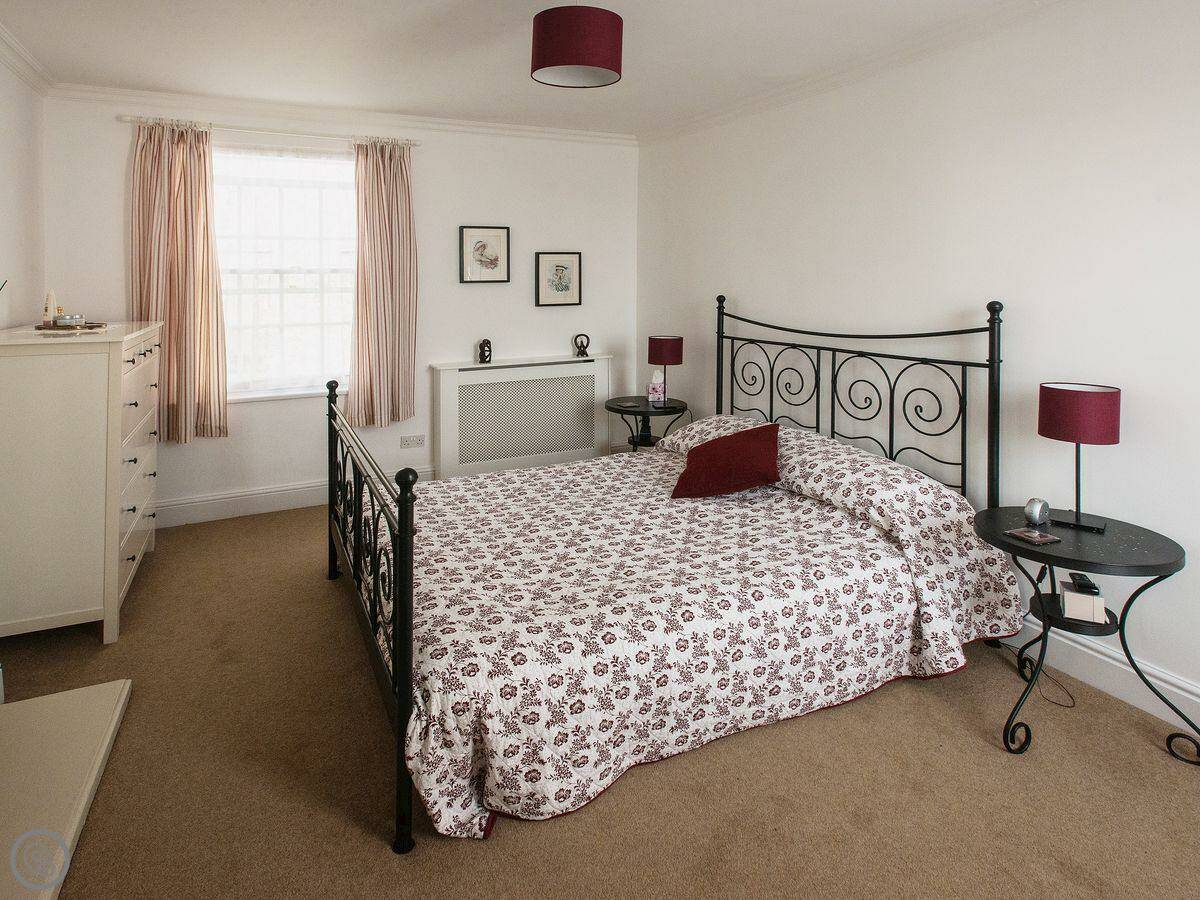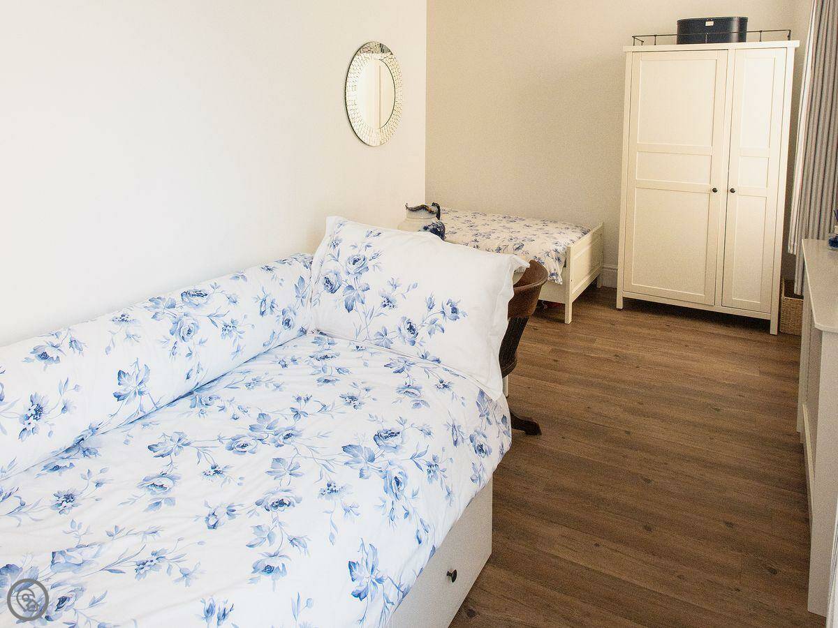 The main bedroom looks out towards Middleham Castle, which is right behind the house. You can see it from the window. The second bedroom has a single bed with a pull-out trundle underneath, so it can be two singles or a double.