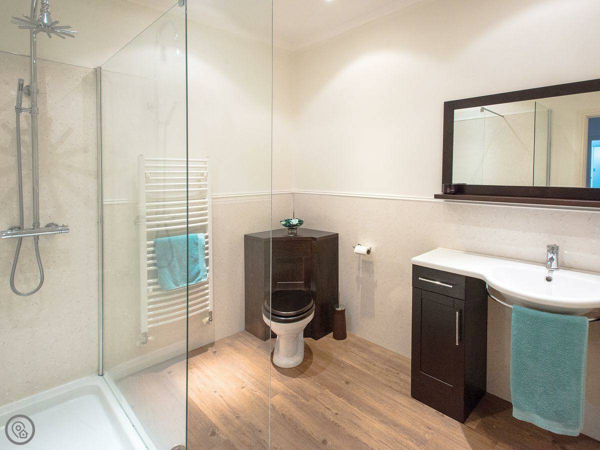 It sleeps four. Two bedrooms and one bathroom upstairs. It's a 4 Star place, so it's been done up nicely. It's got things like a walk-in shower and a proper kitchen. The stairs are standard for a cottage.