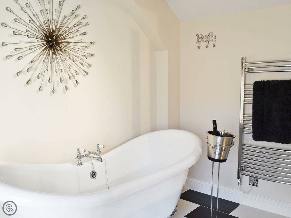The house sleeps six, three bedrooms and two bathrooms. That's useful, means less queueing in the morning. It's a 4 Star place, so it's comfortable and well looked after. The stairs are steep and a bit narrow though, so watch your step.