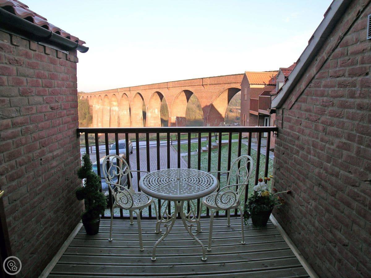 The cottage is up on the bank of the River Esk. You get a good view of an old viaduct from there. There's a south-facing garden at the back, which gets the sun, and a small balcony off the main bedroom.