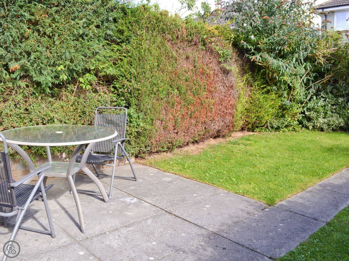The garden gets the sun. There's a lawn and a bit of patio with chairs. Parking is right there.