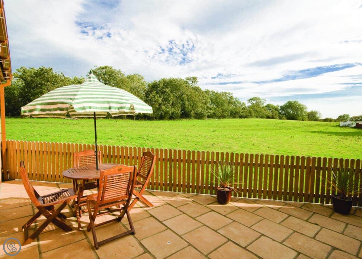 Russet is a romantic hideaway enjoying a private and peaceful location within a sheep grazed orchard and sharing its surroundings with another holiday property, Greengage . The accommodation is all on one level, has an open plan layout and includes a wood burner in the lounge and picturesque views from its patio. Skipsea’s sandy beach, two pubs, a restaurant and shops are just under a mile, and the local leisure park’s gym and indoor swimming pool are two miles.