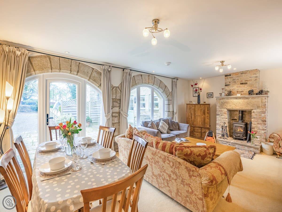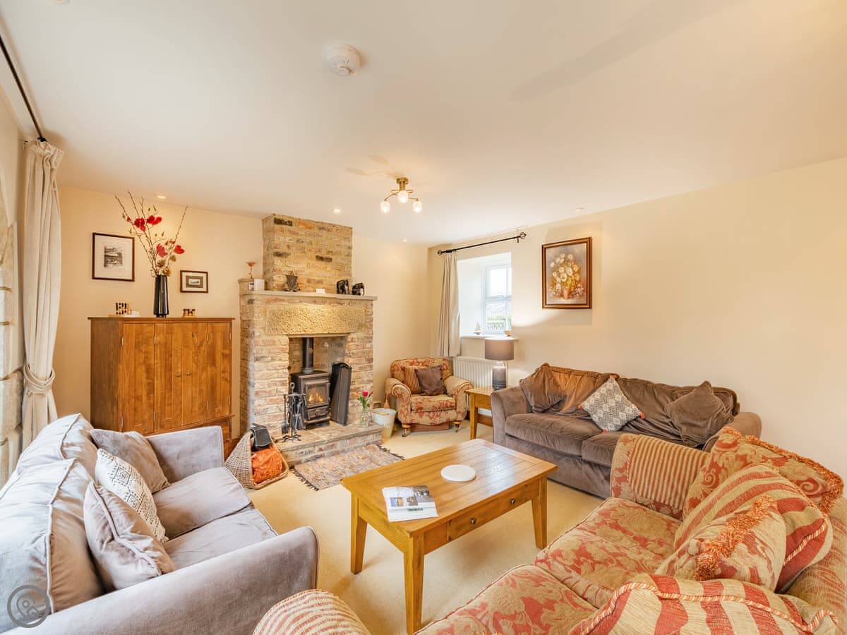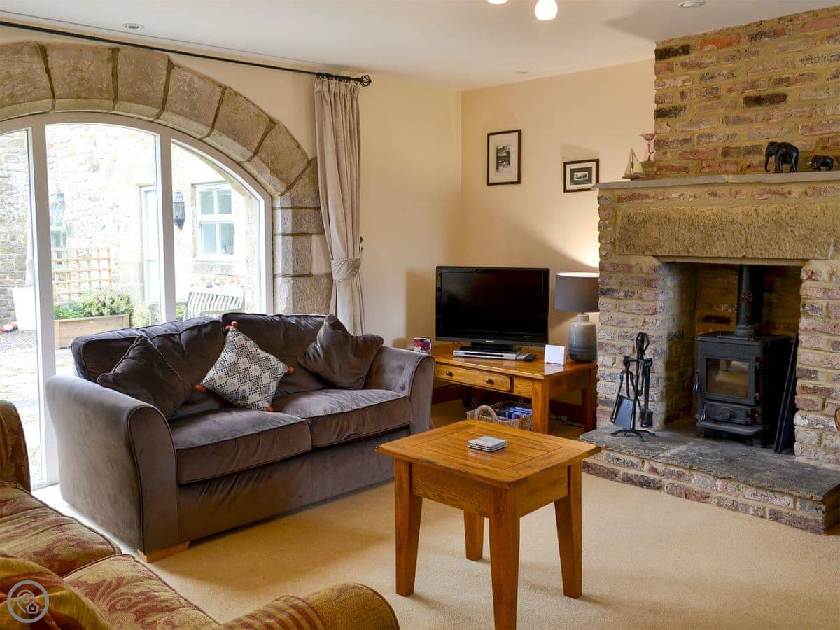 The garden at the front is enclosed. It's got a patio area with a BBQ. Inside, there's a wood burning stove for the cooler nights.