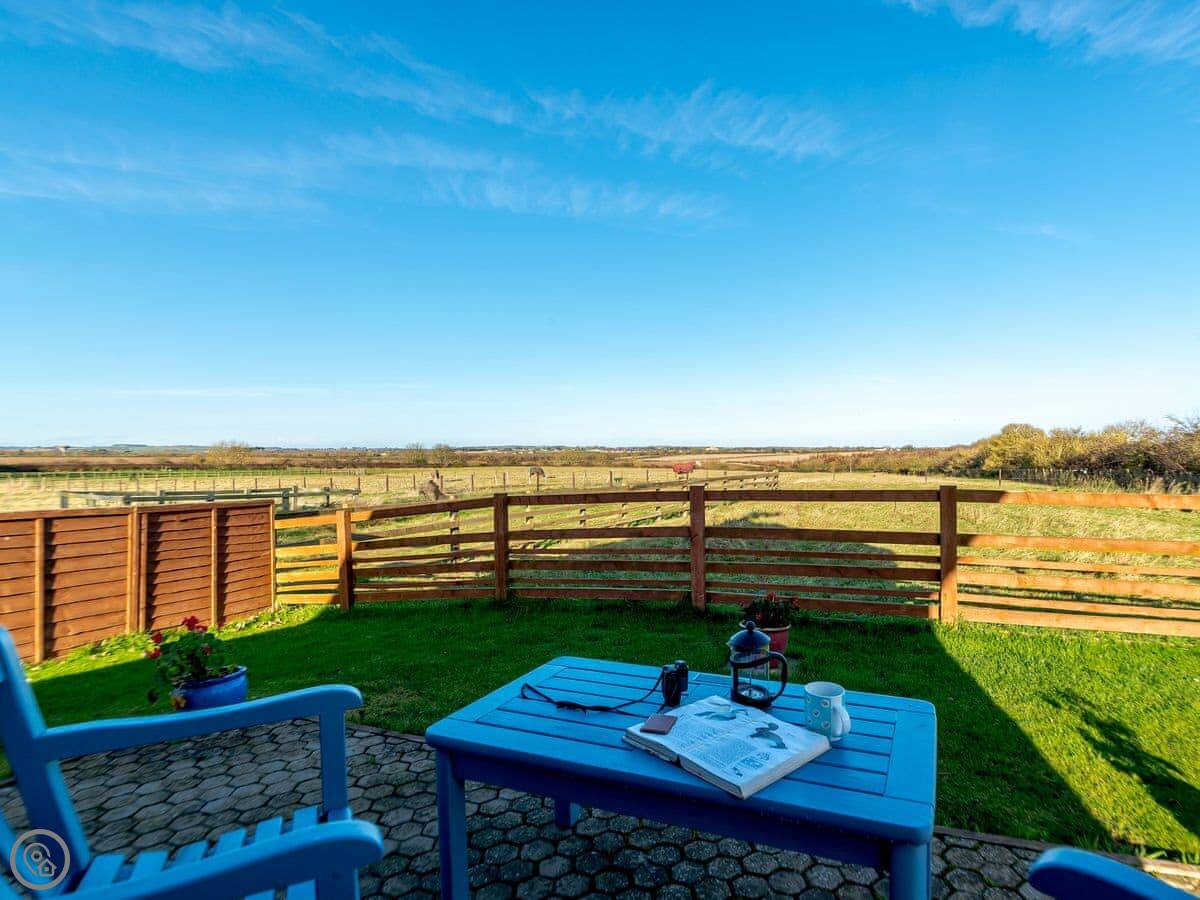 The main thing is the view. There is nothing between you and the fields all the way to Warkworth Castle. You can see it from the front windows. The garden is enclosed and private. There is a patio area out front with a chimnea, which is nice in the evening.