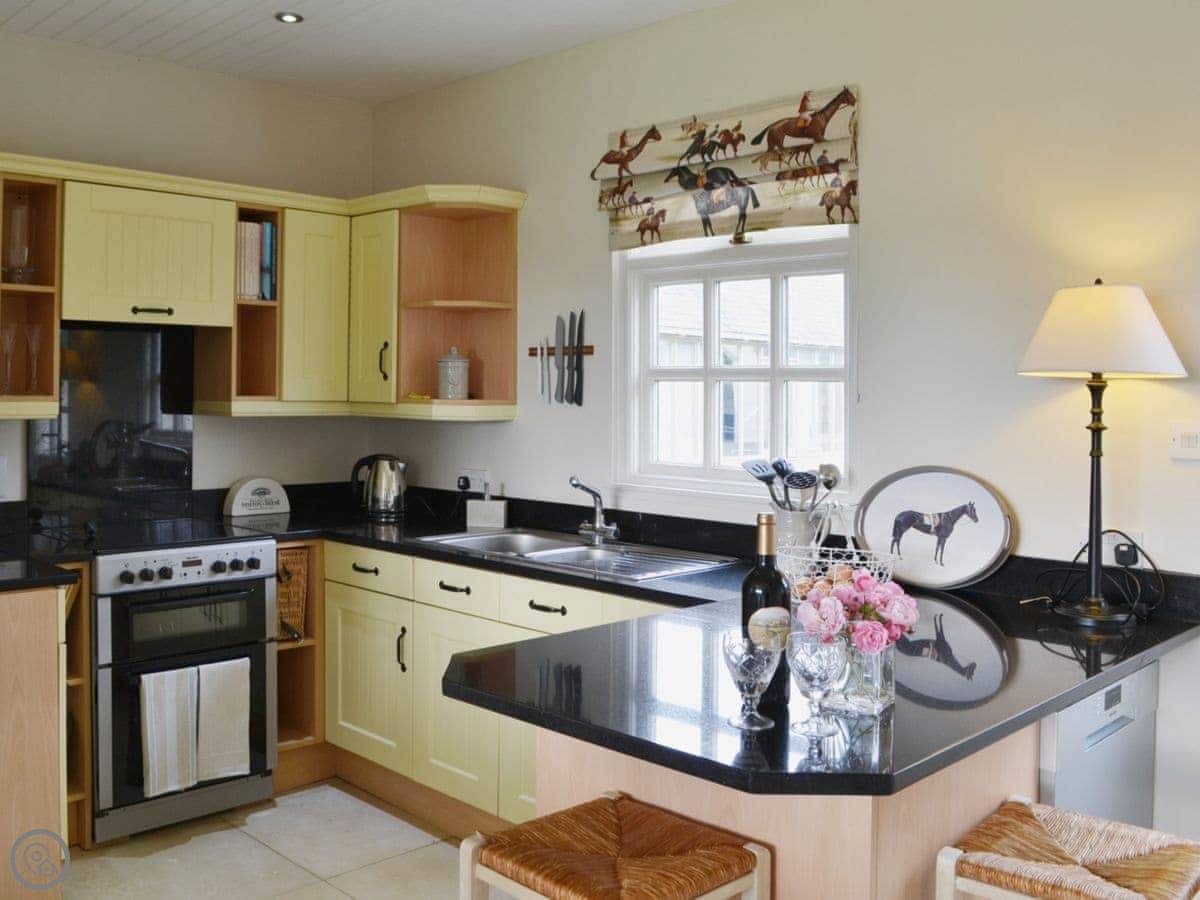 Snooty Fox Cottage is in Hexham, about a mile and a half from the town centre. It's next to our house, on the edge of the racecourse grounds. You get your own garden and it's quiet, with a view over the fields.