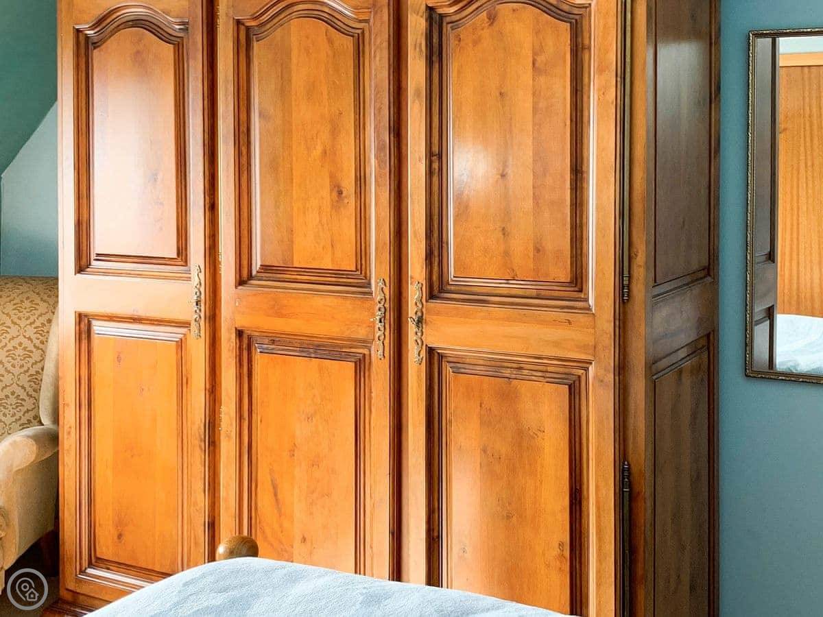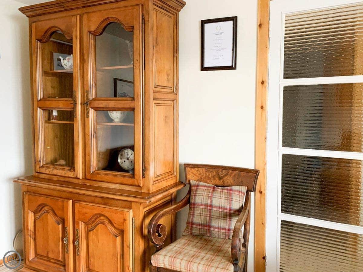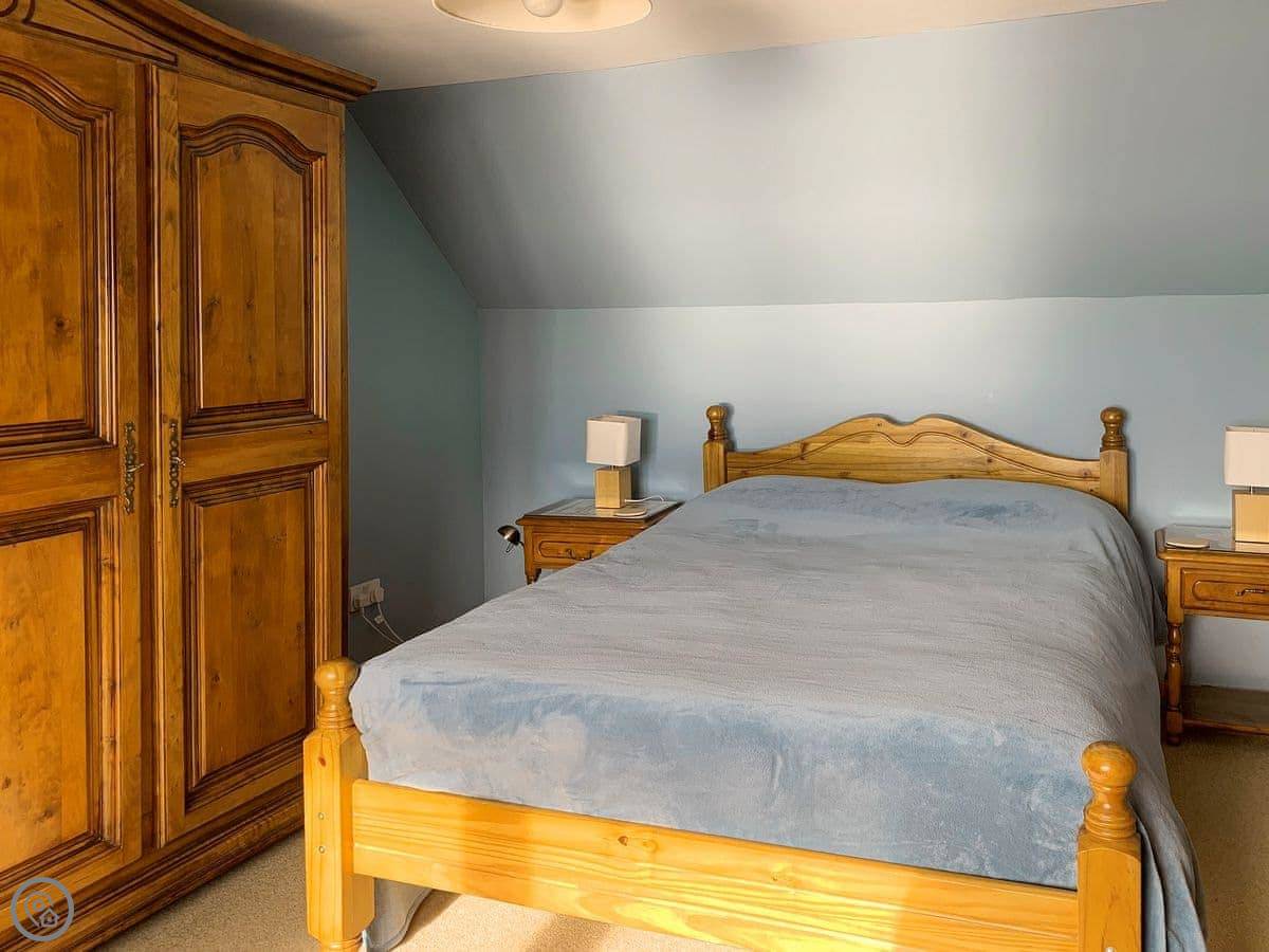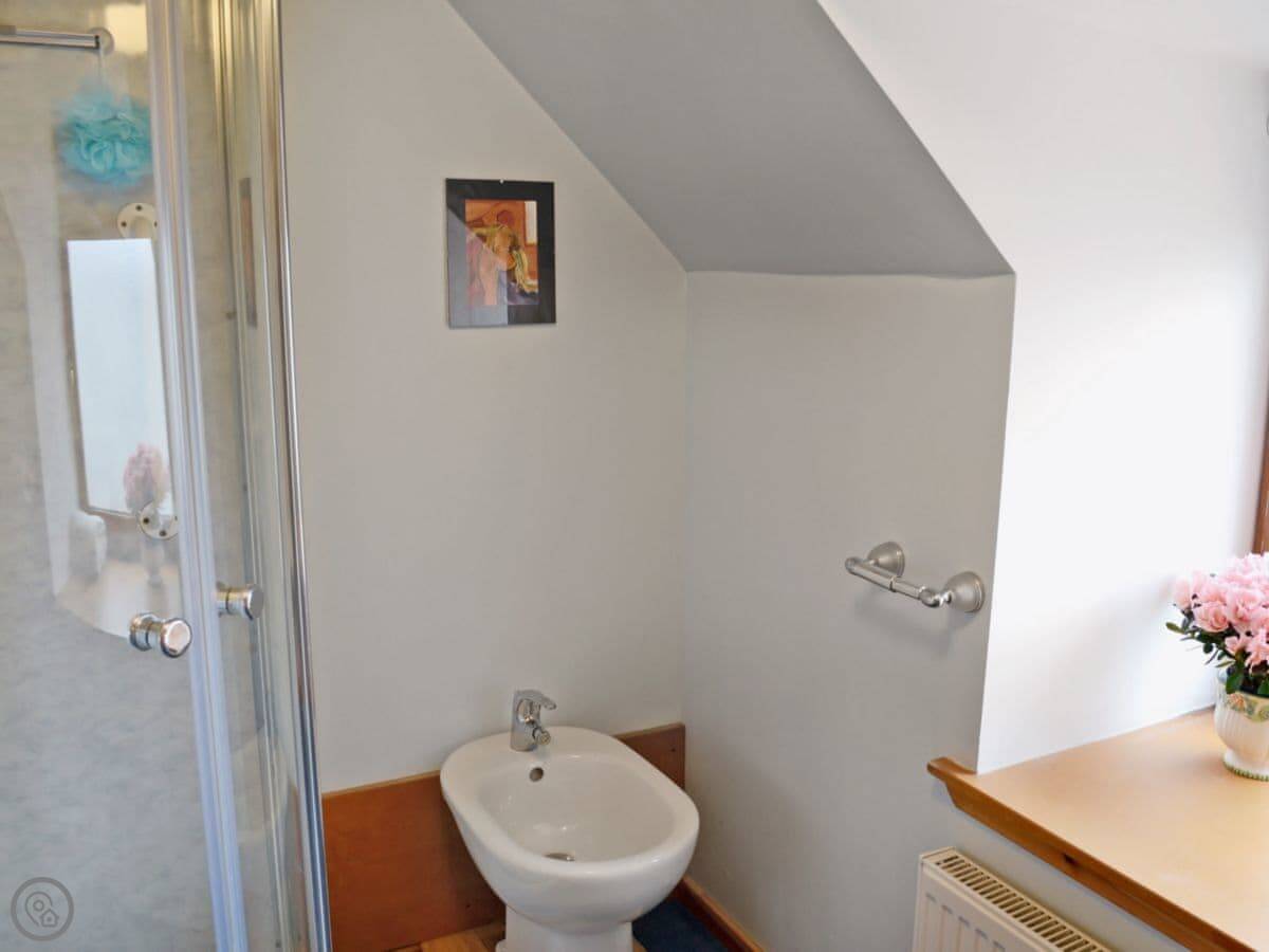 For facilities, it's got a multi-fuel stove for the cooler evenings, central heating, double glazing, so it's warm. There's a washing machine, a dishwasher, WiFi, and a TV. There's a cot and a highchair if you need them. Bedding and towels are included. There's an electric vehicle charger. Outside, there's a seating area and a shed for storing bikes or kit.